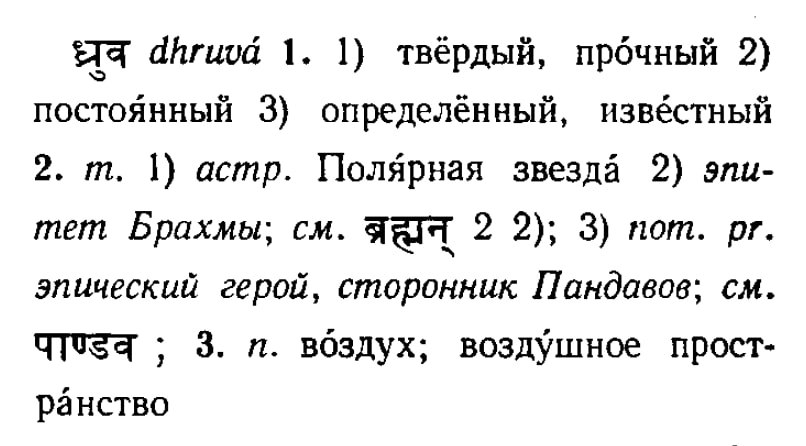 Напоследок поделюсь одним своим личным открытием. Читая санскритский словарь, нашёл это прекрасное слово dhruva. Оно означает практически тоже самое.