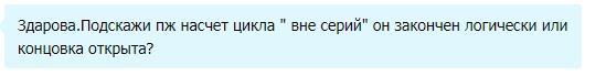 Действительно... Если цикл называется "Вне серий" - что же там? Общий сквозной сюжет, наверное? И на цикле стоит галочка "Завершено". А он закончен? Как же угадать?