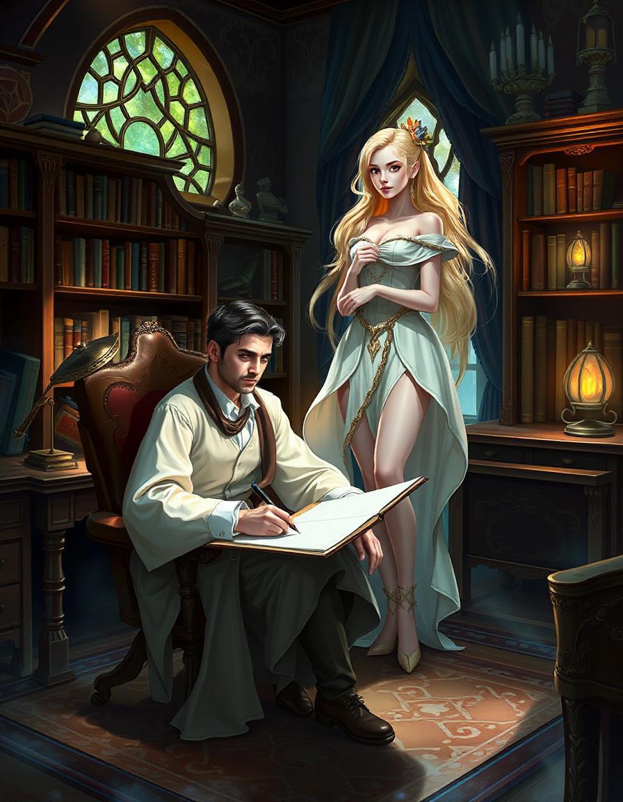 Раз такое дело, то вот, сколько чудесатого мне накидала нейросеть по запросу "писатель и муза".