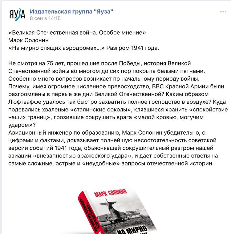 Марк Солонин - это лютый антисталинист и либераст, второй Резун-Суворов. Однако Яуза его печатает