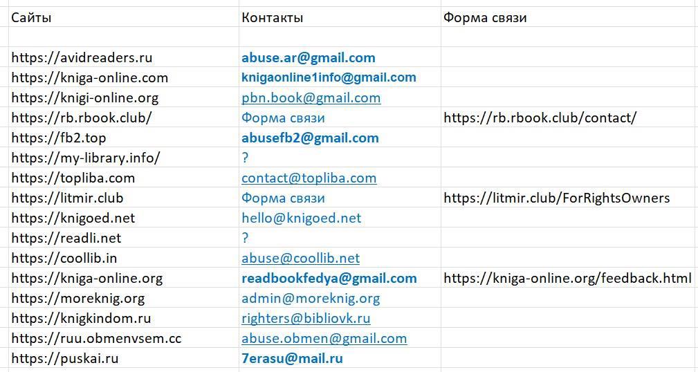 Ниже скрин с сайтами и их контактами, возможно кому-то пригодится.
