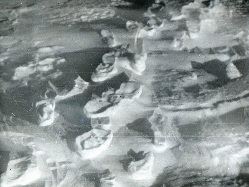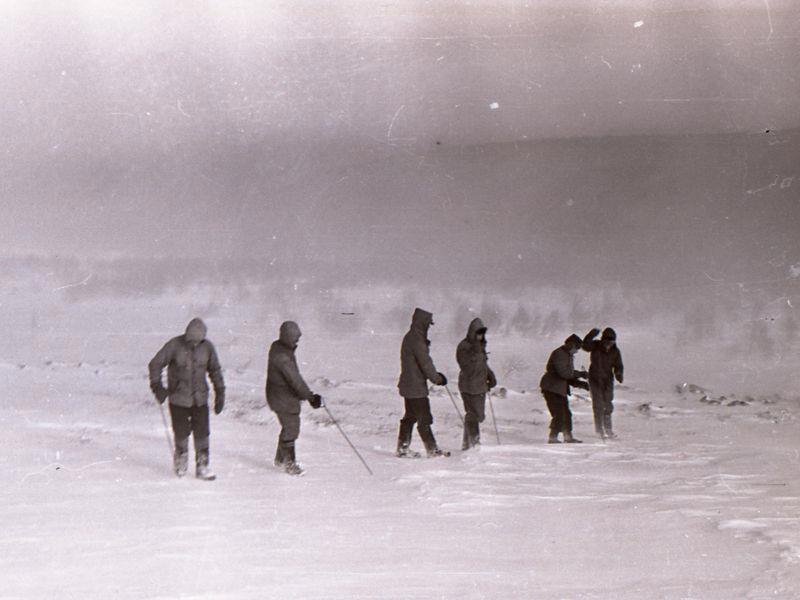 Так как группа выскочила без обуви на мороз и направилась вниз по склону, снег под ногами таял, в результате дальнейших ветров остались видны вымерзшие следы девяти пар ног уходящие вниз по склону, но они исчезают примерно через 500 м.