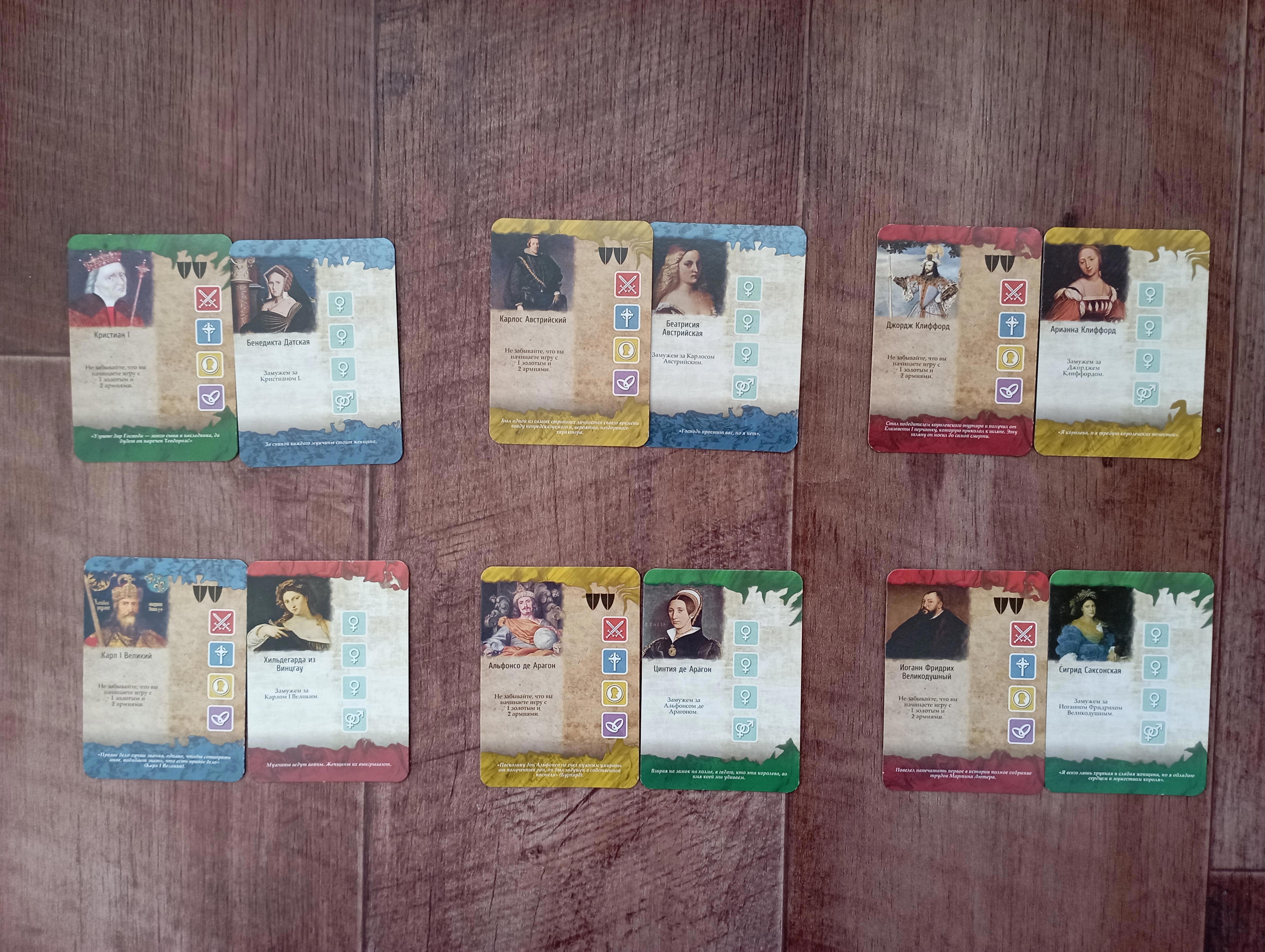 Кто-то из этих людей очень знаменит, а кого-то знают только упоротые любители истории. Но все люди на картах — реальные исторические деятели. Это, на мой взгляд, придаёт игре больший интерес и заодно оттенок весёлого абсурда, когда Наполеон Бонапарт и Екатерина II оказываются родными братом и сестрой. С другой стороны, все эти аристократы и так были друг другу родичи, подчас довольно близкие. И известный булгаковкий персонаж был прав, говоря: "Вопросы крови – самые сложные вопросы в мире". Ну и игра заодно просвещает: вот так полезешь в Гугл из любопытства, почитать про какого-нибудь Филиппа II Испанского и залипнешь надолго, попутно узнав много нового.