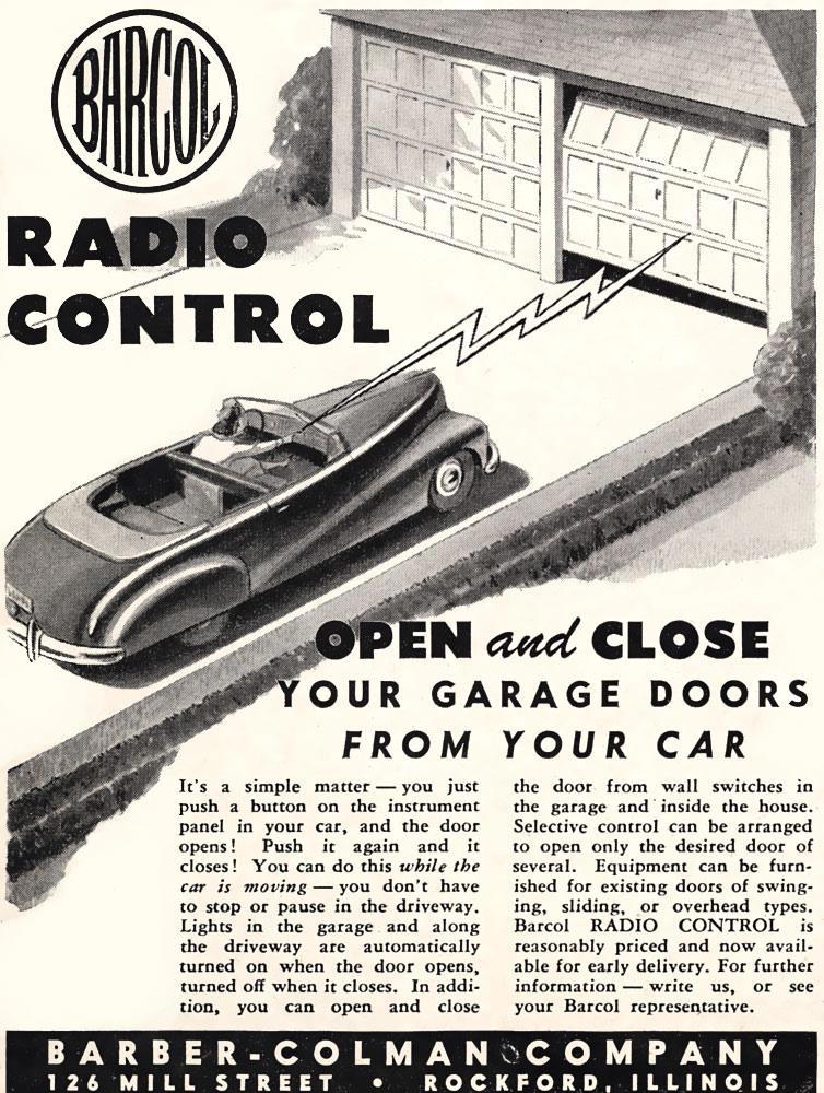 А вот автоматические ворота, управляемые с брелка. Сейчас их многие ставят в своих домах. И тоже - из журнала 50-х годов.