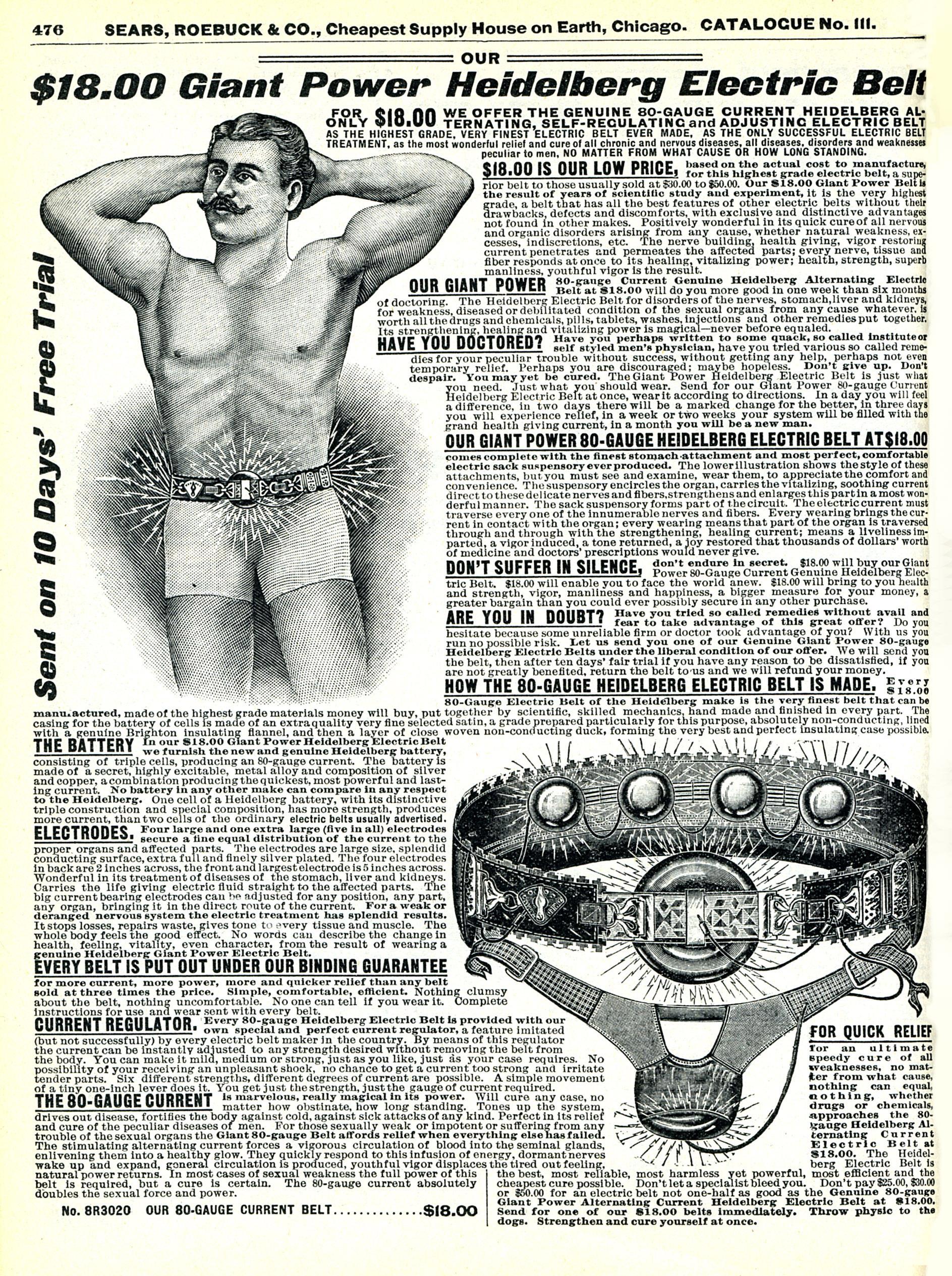 Вот, например, электрический пояс для качания пресса. Несколько лет назад был буквально бум их продаж. Новинка! Но вот старая реклама 40-х годов - и в ней предлагают купить именно такой пояс.