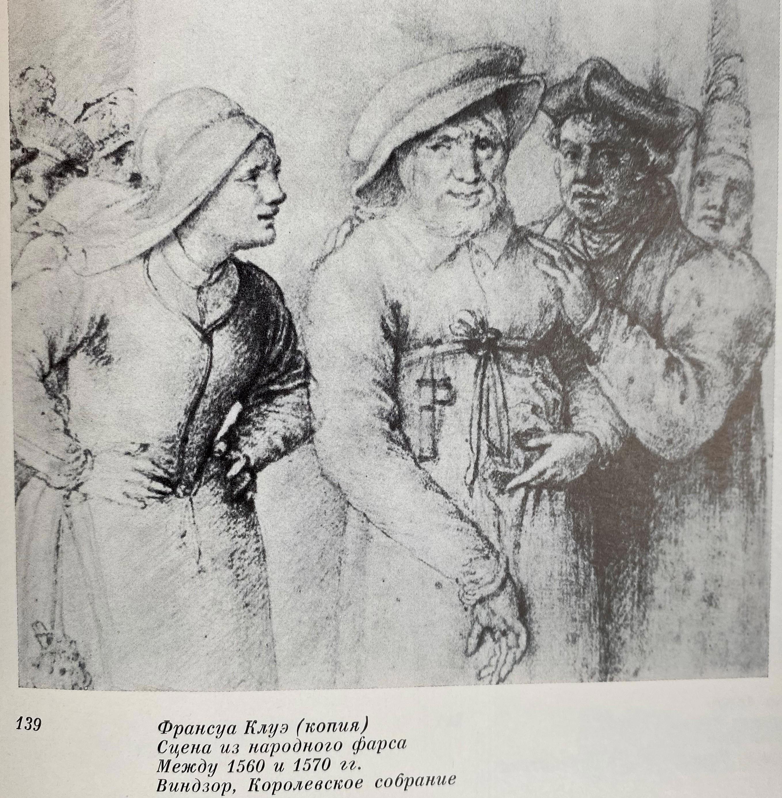А еще рисовальщики изображали сражения, грабежи, жанровые сцены — действительно машина времени на бумаге, прошлое, как оно есть. И не думайте, будто речь всегда шла только о высокопоставленных особах — на одном из рисунков Ф. Клуэ вы можете видеть сцену из народного фарса.