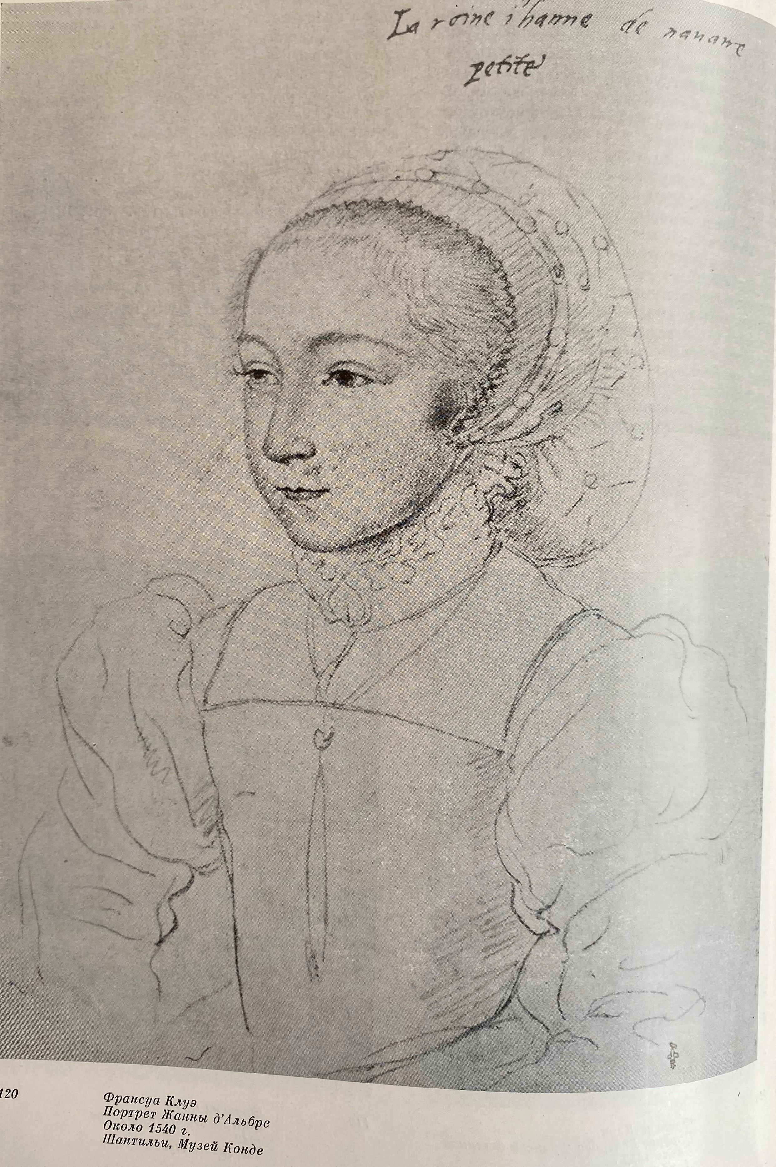 А вот вы представьте, знатные дети — особенно королевские — воспитываются вдали от родителей. По разным причинам. К примеру, юную Жанну д'Альбре, будущую королеву Наварры и мать Генриха IV, дядюшка Франциск I просто забрал у родителей (между прочим, у родной сестры). Но должны же были родители знать, как выглядит дочь! И вот — любуйтесь. Портрет двенадцатилетней Жанны, выполненный великим Франсуа Клуэ. Обычно везде помещают портреты королевы уже в зрелом возрасте, но когда-то она была очаровательной девочкой. Через год эту девочку родной дядя насильно выдаст замуж (брак свершен не был по причине юного возраста жены, а через 5 лет брак был аннулирован).