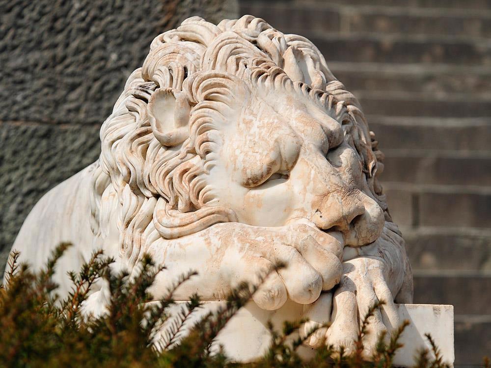 Третья пара стоит у входа во дворец. Эти львы не просто проснулись. Они чутко хранят покой хозяев дворца, наблюдая за всеми, кто находится рядом с ними.