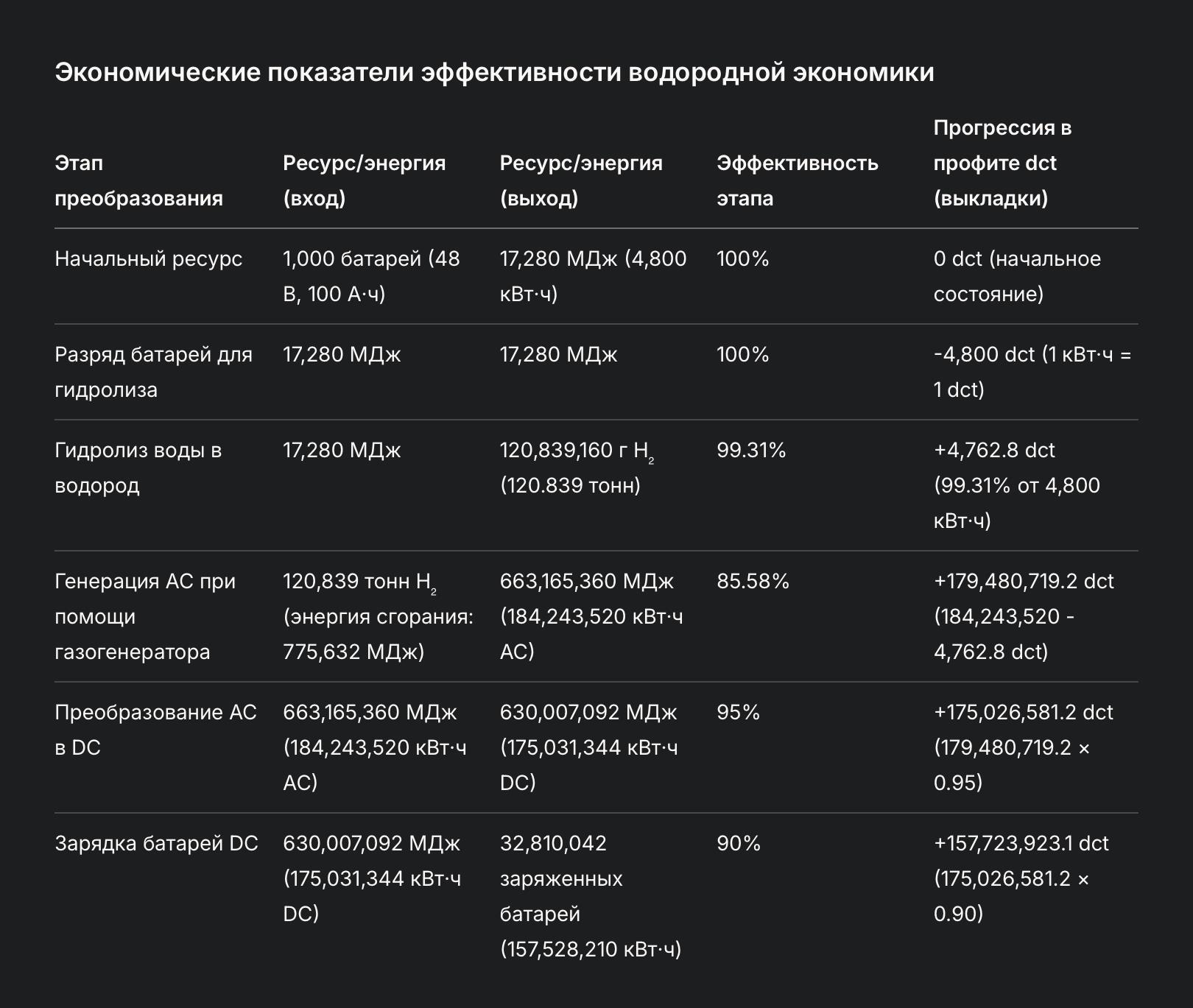 Чтобы не рассеивать выработанную электрическую и электромеханическую мощность, на каждом этапе «энергетической прогресси» предусмотрена возможность «технического сбыта» промежуточного (операционного) актива. Например: не имея излишков аккумуляторной емкости придется сбывать переменный ток или молекулярный водород, но чтобы не разрывать финансовый мультипликатор - «операционный актив» можно обменять на dct и запасти, таким образом, необходимое количество электроэнергии.