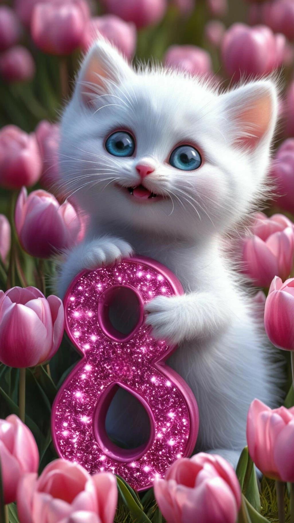 Сегодня – ваш день, и я мурчу для вас самые тёплые и нежные пожелания. Пусть каждый ваш день будет солнечным, а если вдруг станет грустно – пусть рядом окажется кто-то, кто согреет вас и поделится с вами теплом. Пусть вам дарят цветы, обнимают крепко-крепко и окружают заботой – ведь вы этого заслуживаете!