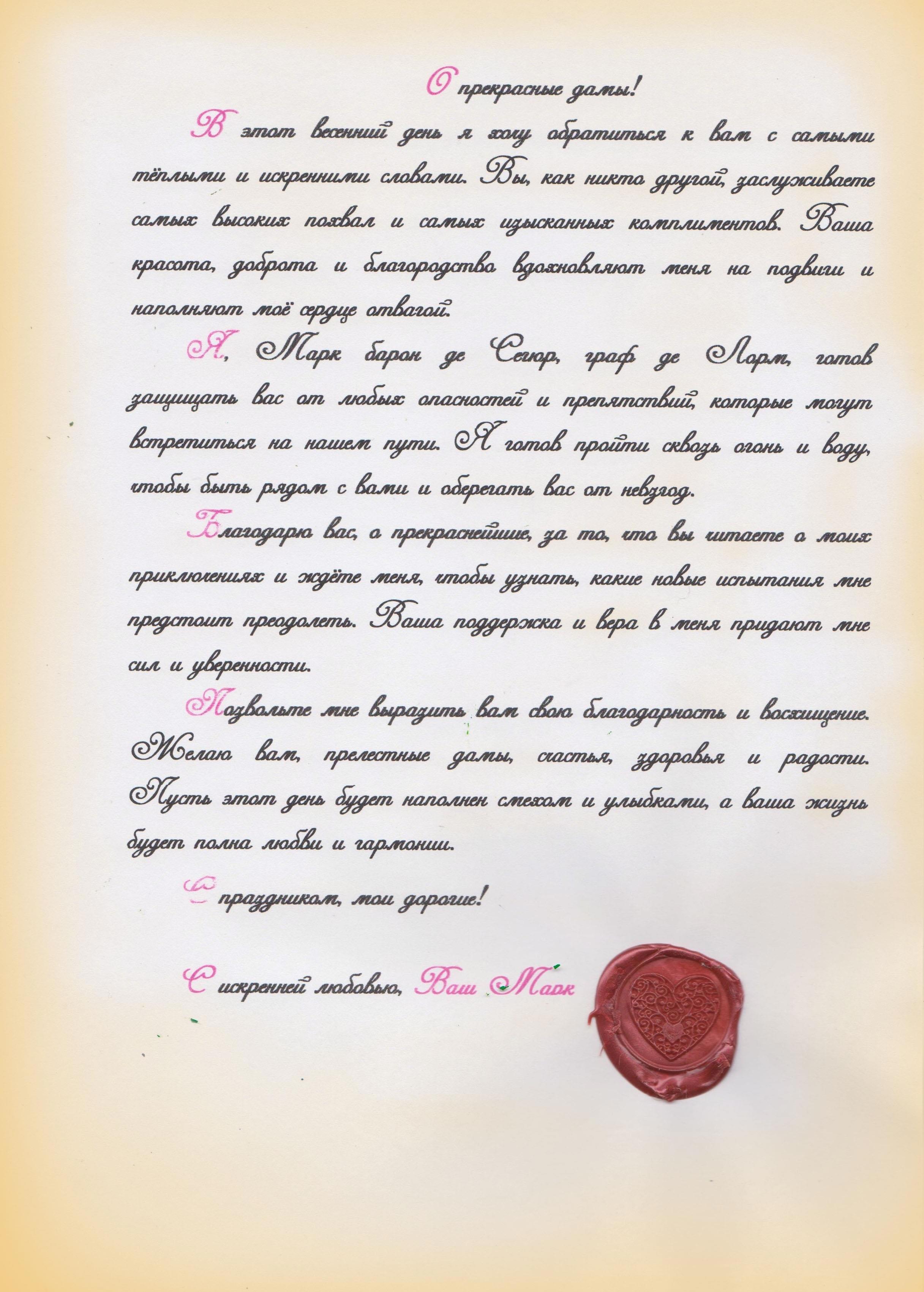 Поздравление прекрасным дамам от Марка де Сегюра!