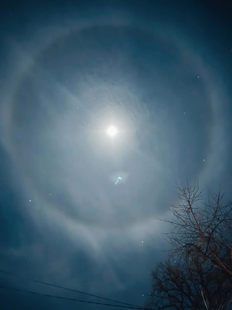 Вот такое кольцо сегодня себе сделала луна. Хотя дождя и мороза нет.