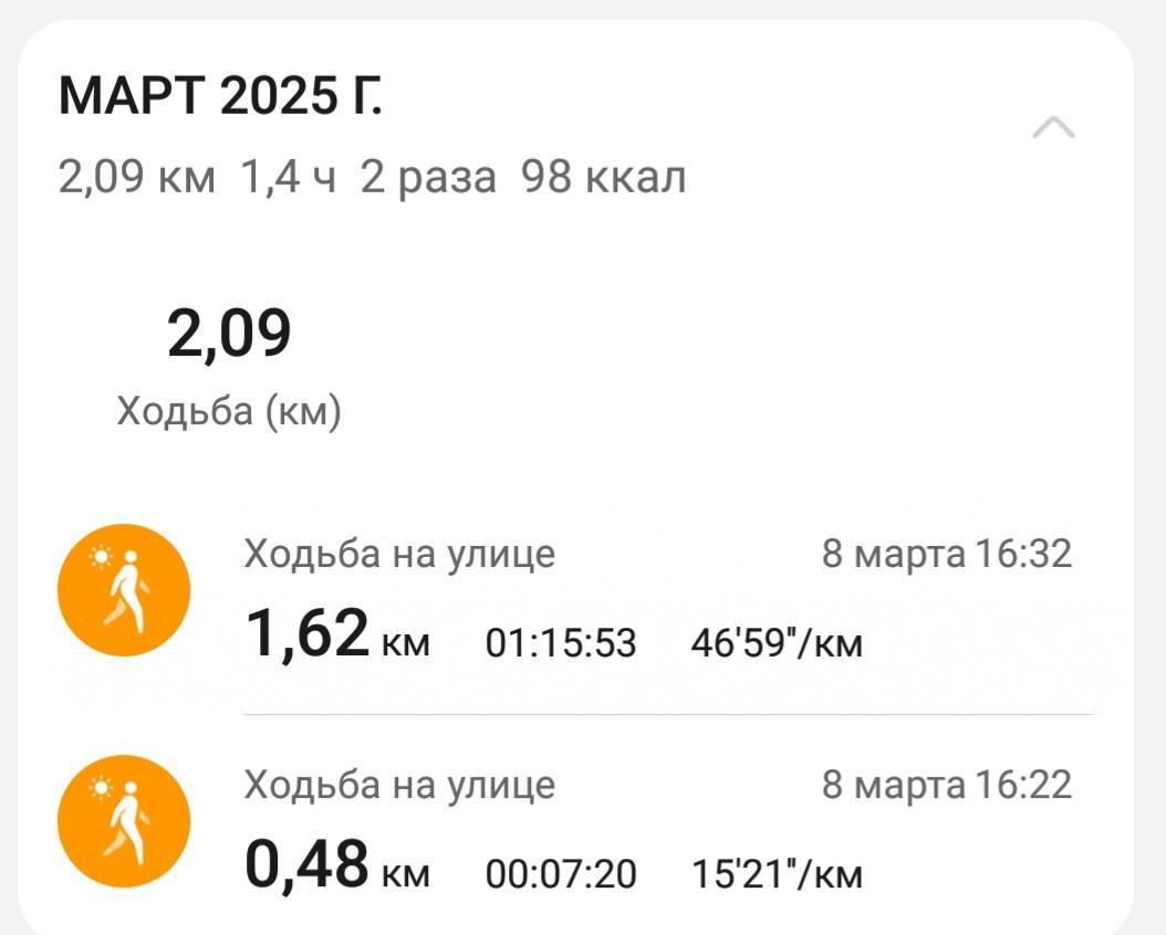 Начну с главного, была чудесная погода, и я смогла выбраться на первую прогулку в этом году, пошла без браслета, поэтому результат в километрах, а не шагах, как я люблю) Делюсь своей радостью)