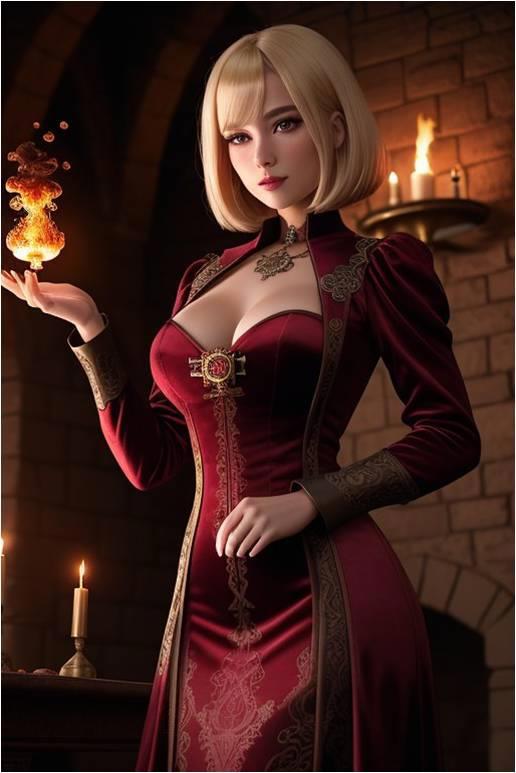 От Маши не отстаёт боевая магичка крепости, Адонет Лабелия. Суровая и решительная, на досуге она любит баловаться... тортиками.