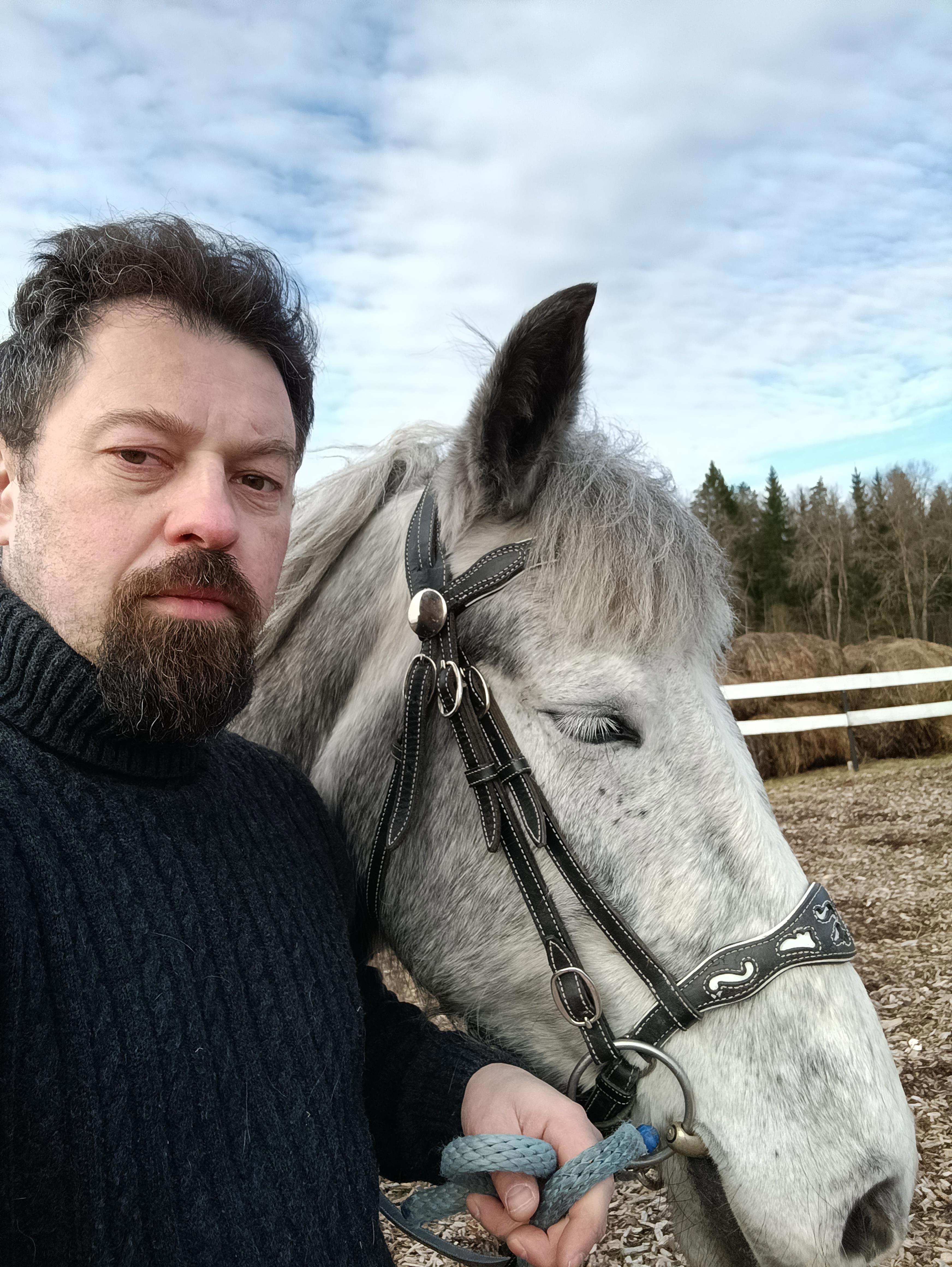 Я почти доделал халтуру, уставший и почти не спавший сорвался с дочкой и бывшей катать доченьку на лошадках. Заодно и сам поездил на мезенской кобыле Славянке, упрямой как коза, но с виду обманчиво тихой и милой. Порода интересная - не крупные, но крепкие. По слухам по снегу прут как трактор.