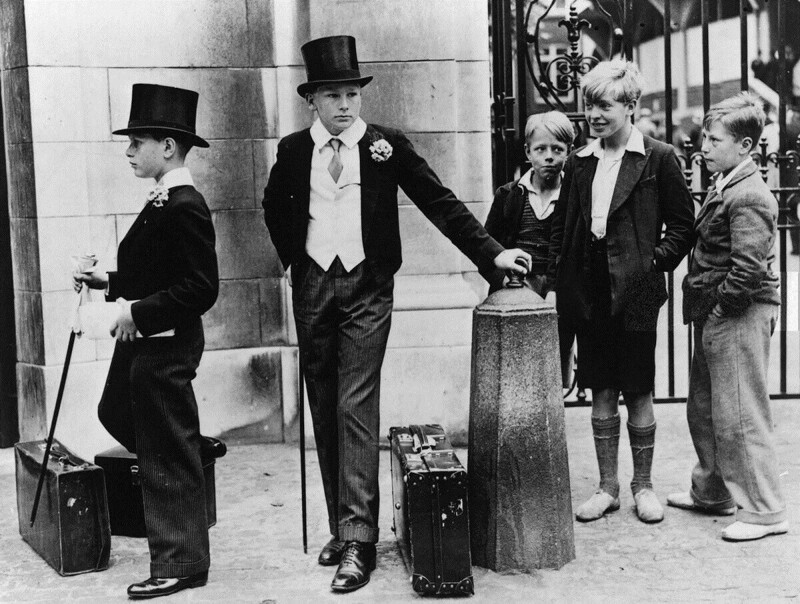 Здесь изображены мальчики, но с девочками ситуация обстояла точно также - они носили взрослую одежду.