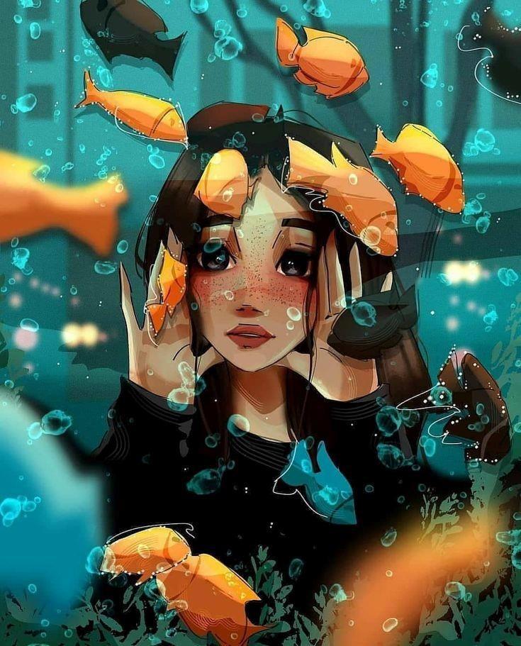 — Пришла посмотреть на рыб в платье на голое тело, развратница! Смотри, как они снуют туда-сюда. Скоро станут откладывать икру. А у тебя есть дети?