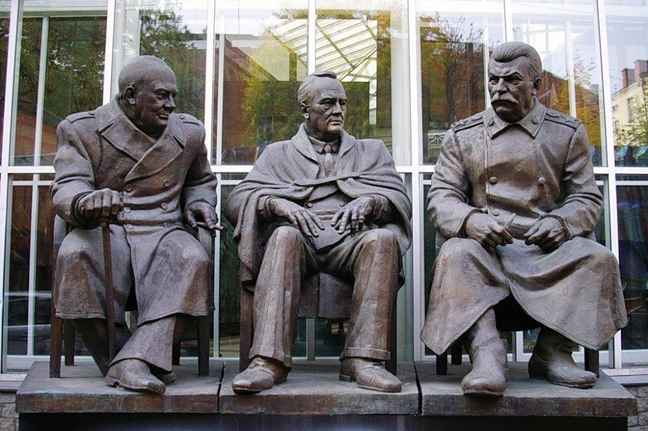 Памятник Большой Тройке в честь 70 годовщины встречи глав союзных стран. Памятник установлен недалеко от Ливадийского дворца.