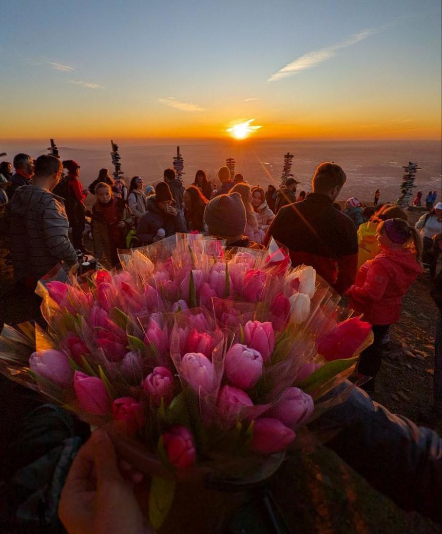 Автор: Ирина ИлиадиДумаю, что самые романтичные люди живут в Пятигорске. Посудите сами, рассвет 8 марта решили встретить на горе Машук. Подъемник в это время не работает! Поэтому люди шли сами! А гора почти километр - 993 метра! Но оно того стоило!
