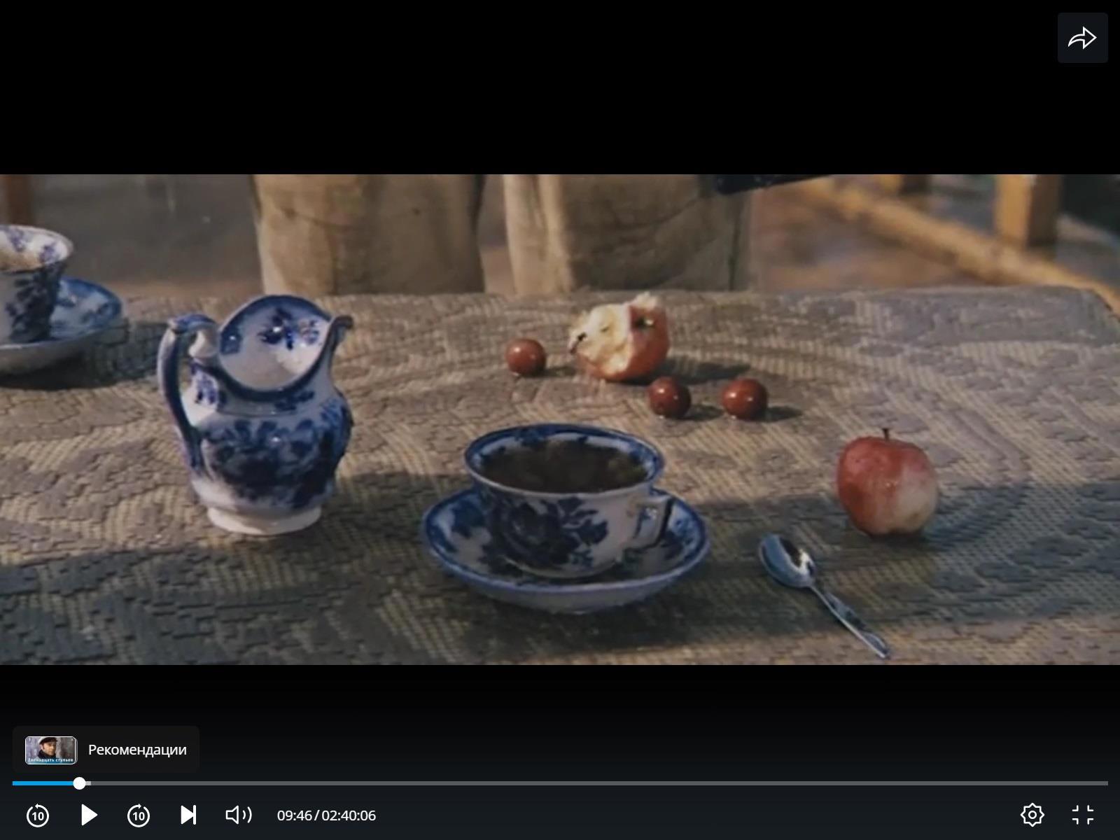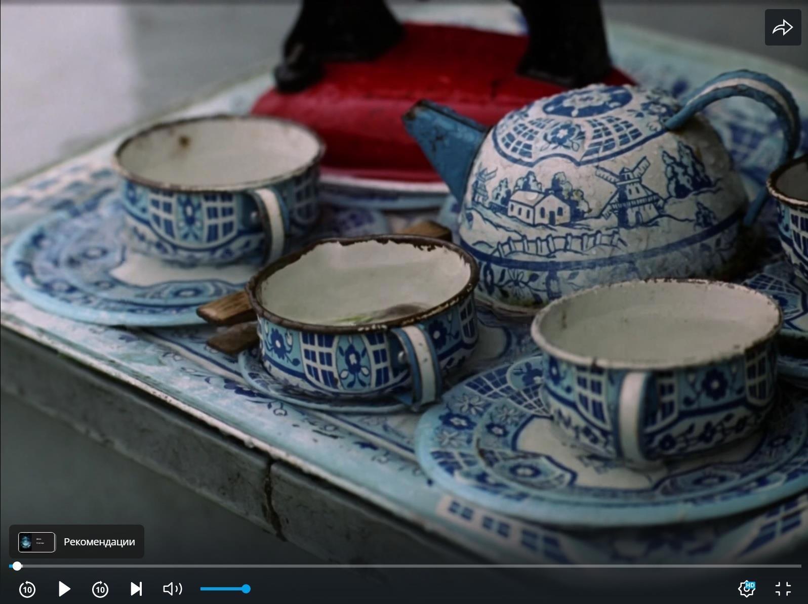 И вот когда еще шли титры, я обратил внимание на один кадр. А именно: показанные крупным планом бело-голубые чашки, которые стоят на столике под дождем, и в них падают крупные дождевые капли.