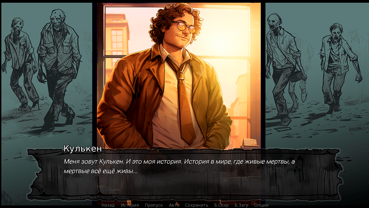 Мы с компанией ребят разрабатываем визуальную новеллу по проекту одного автора с АТ. Лор и персонажи принадлежат Талани Кросс, разработкой (технической частью) занимается Алекс Шан Ли, а я продумываю костяк (ветки прохождения, переменные) и прочие сопутствующие штуки вроде звуков и спецэффектов, которые потом реализует наш разраб.