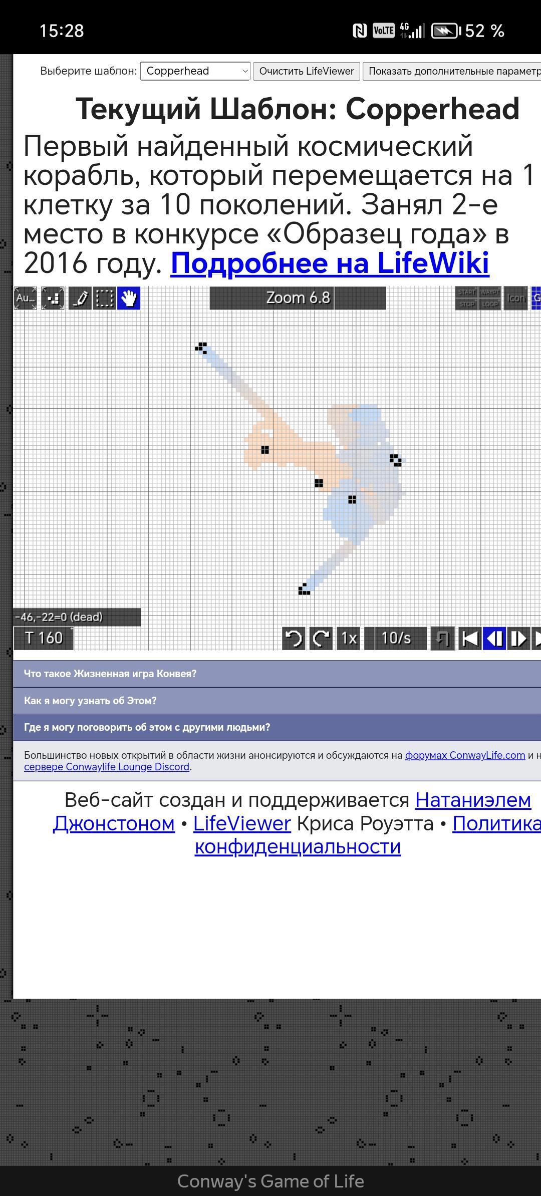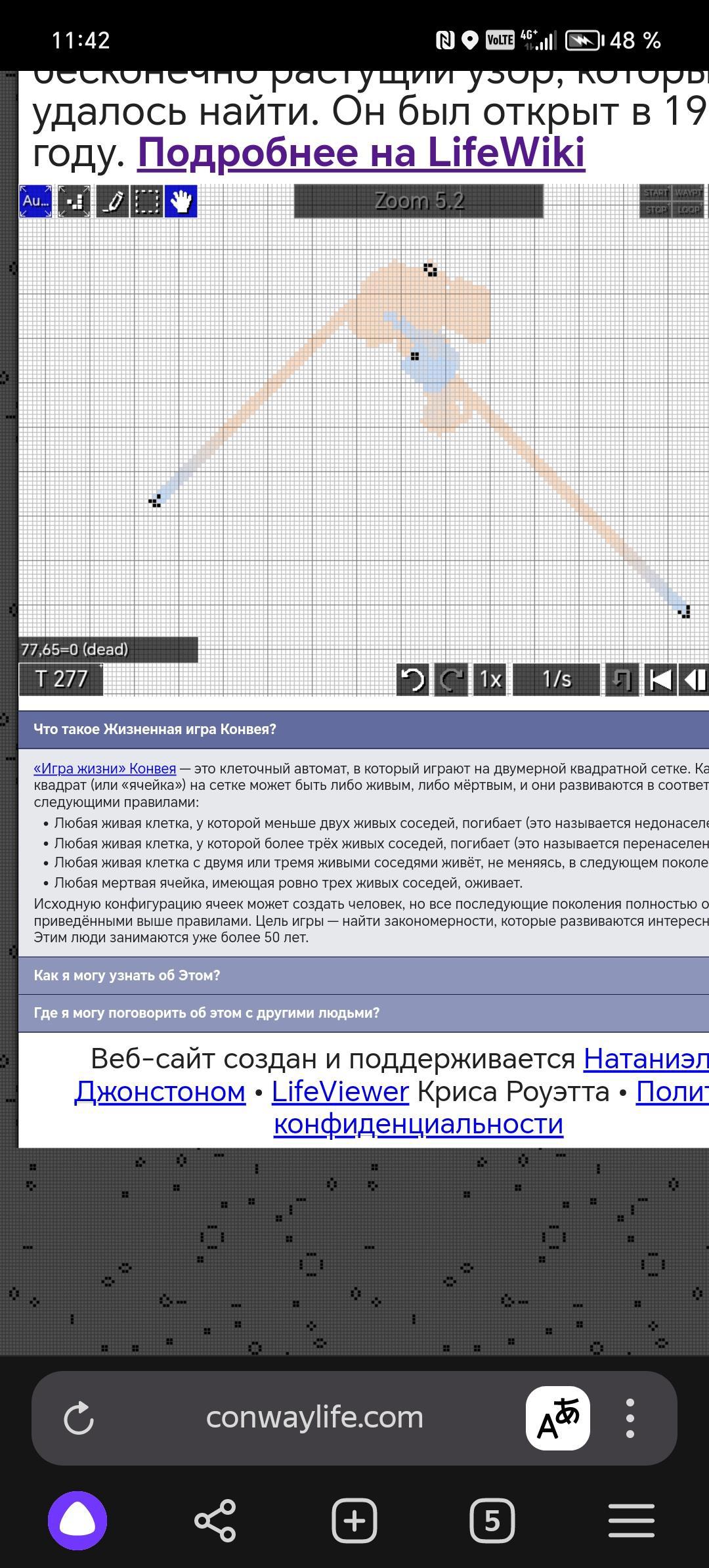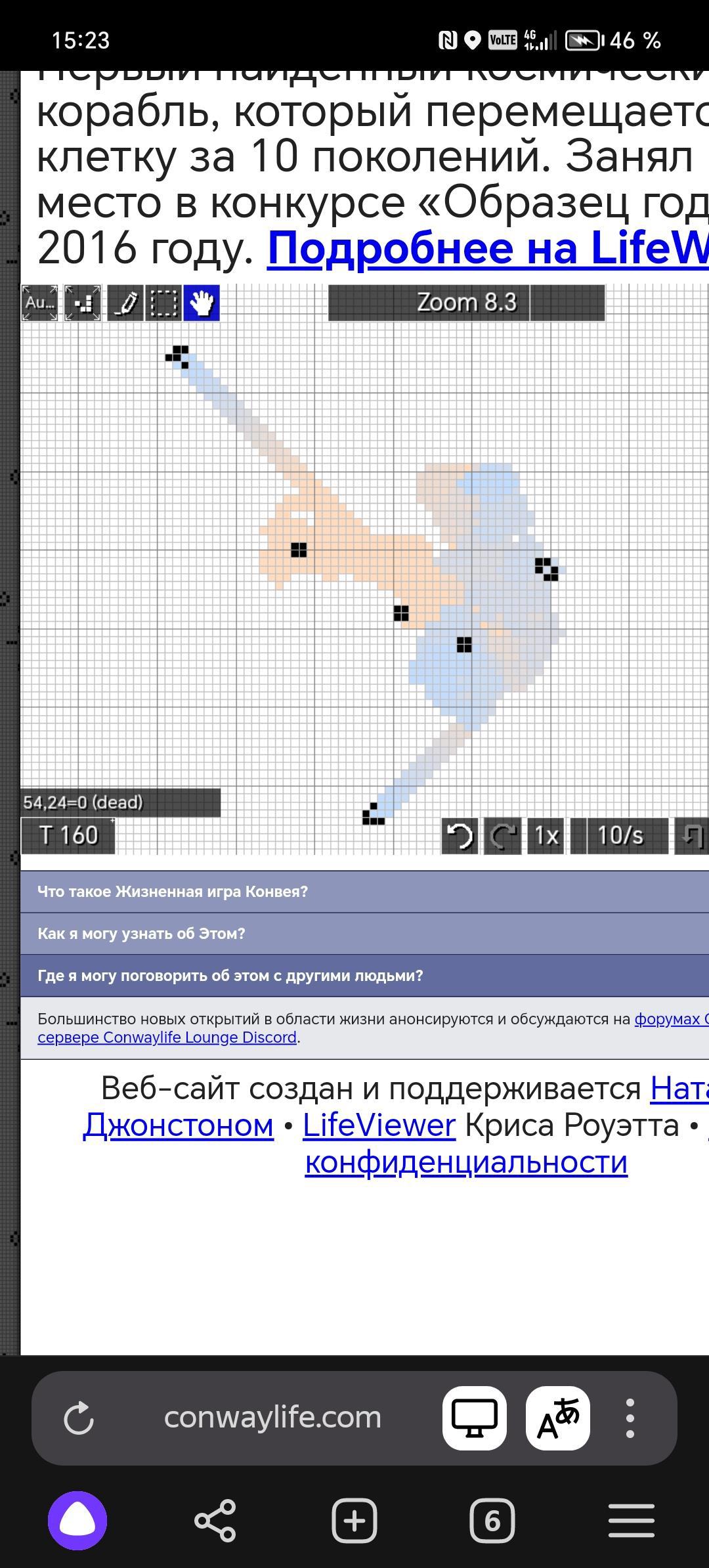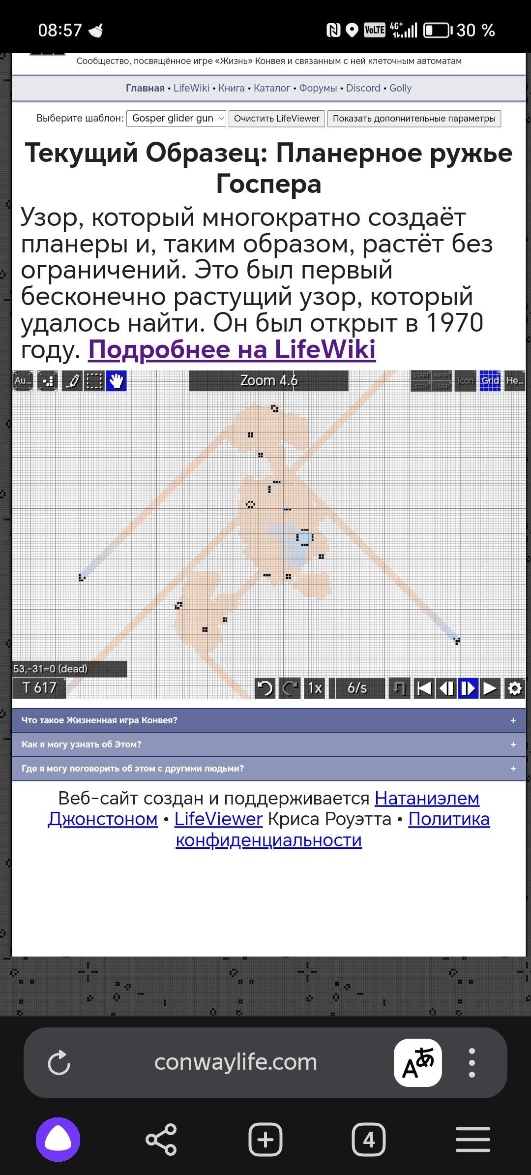 Сейчас будет куча фоток. Собрать их, коллекцию, в одну стартовую популяция сложно. Тем более сделать патерн - это значит заскринить стартовое и конечное расположение клеток. Напомню, что серединные состояния могут разветвлятся. Да! Одинаковые стартовые и конечные условия, а сценарий их многовариантный. В информатике и программировании это называется зацыкливание или цикл с Увеличивающеся ошибкой. Почему-то это называют ИИ или Нейросетью и отсылают к машине Тюринга. Хорошо что я в 90-ые в ПТУ ходил на программирование языком паскаль и... Тогда только Появлялся Турбопаскаль и... Язык програмирования добился на части, что бы услугу по его изучению можно было про довать подороже.
