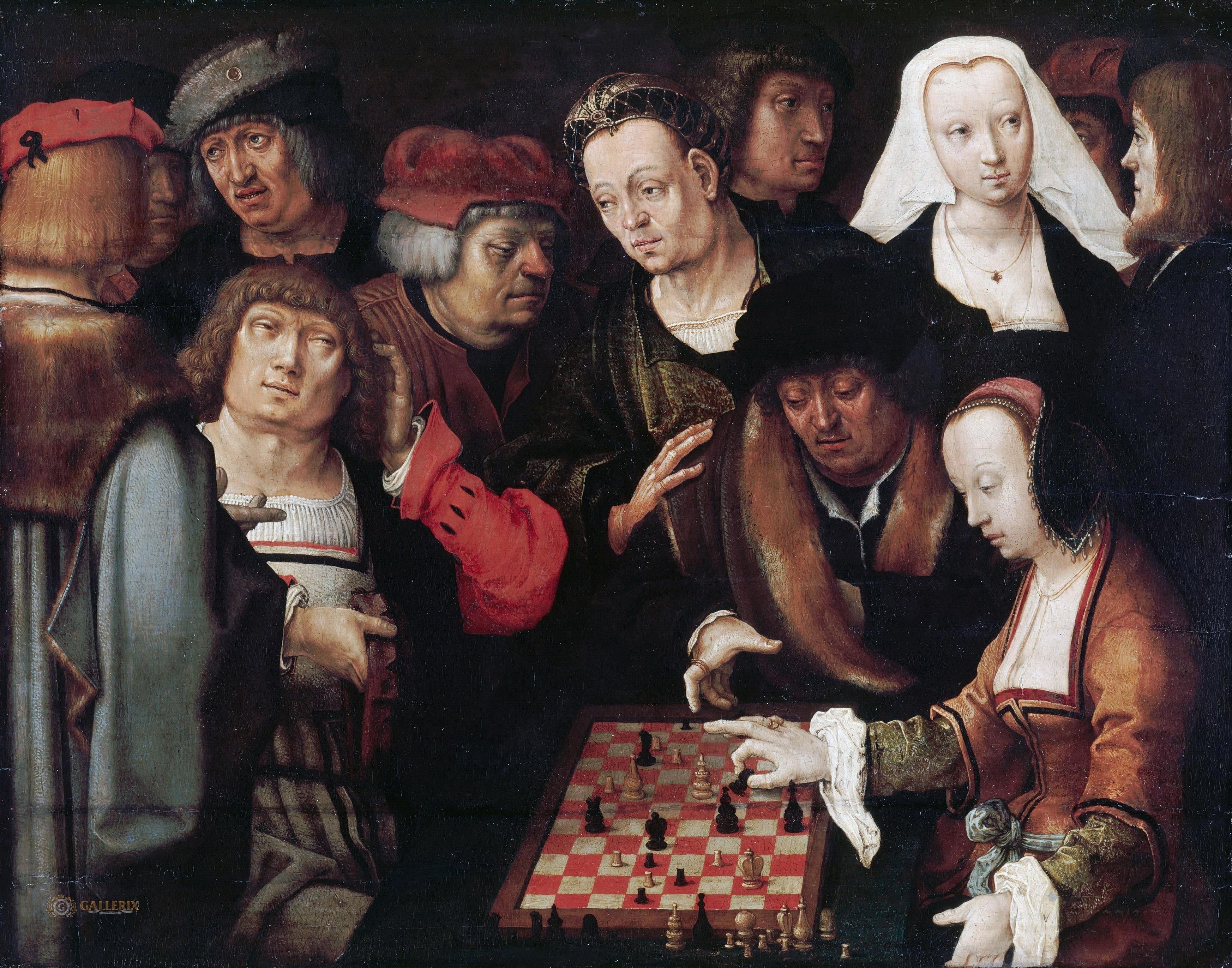 Несколько партий курьерских шахмат сохранились только на картинах. Самая известная — «Партия в шахматы» (около 1508 года) Лукаса ван Лейдена. Мы даже упоминаем ее в нашем рассказе. На картине мужчина и женщина играют в курьерские шахматы — это единственная «задокументированная» партия, до наших дней не дошлось ни одной записи или нотации. И, кстати, черные там побеждают, но то мата белому королю еще далеко. А все потому, что ферзь ходил всего на одну клетку по диагонали!