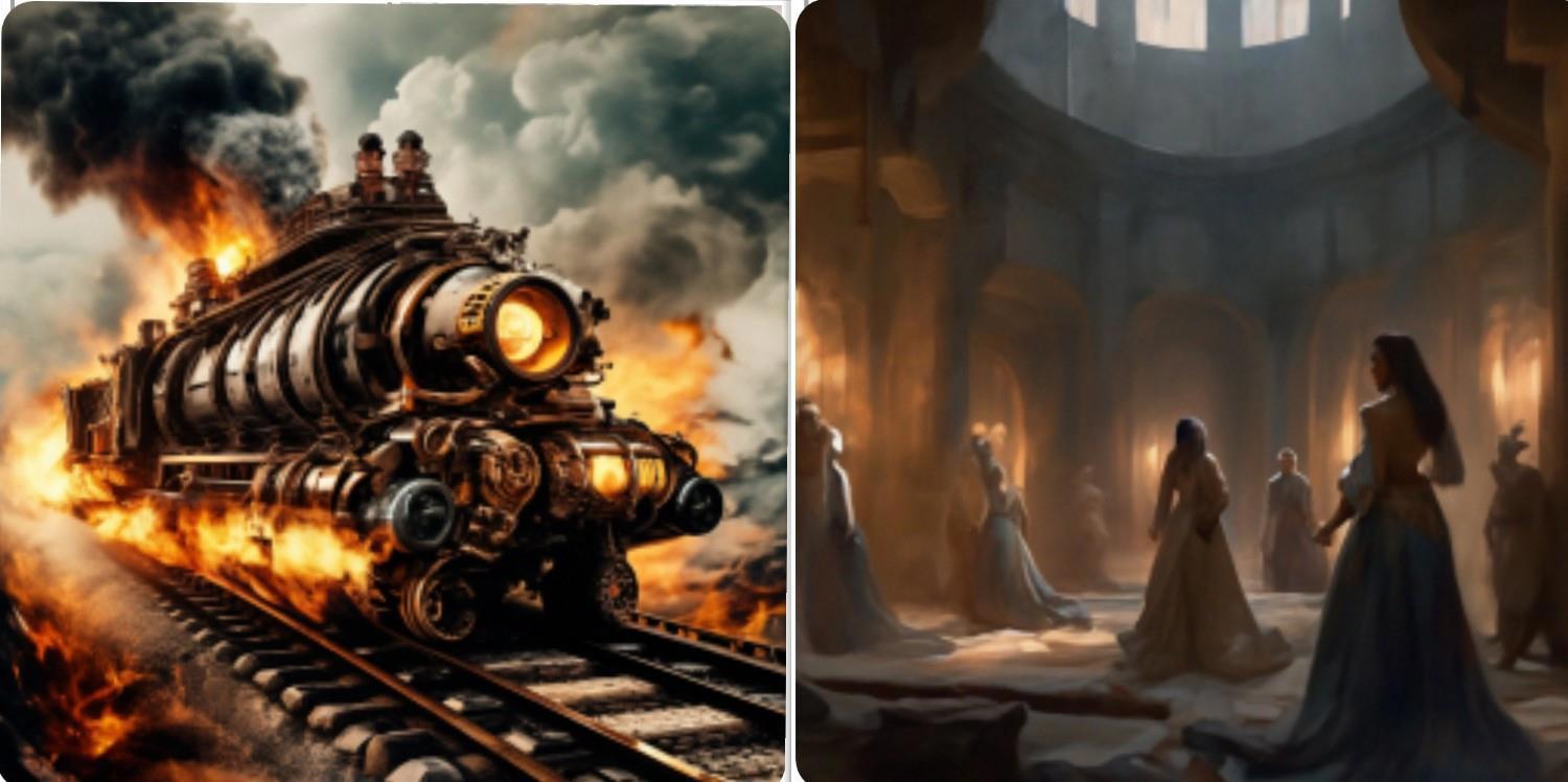 Внезапно Гланская принцесса Вирита вскочила и рявкнула, хорошо поставленным командным голосом: - А ну тихо шалавы, августейшие. На улице бой!".