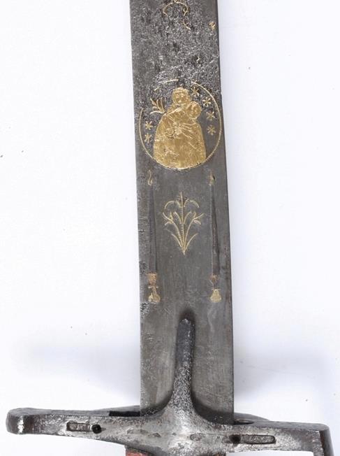 - Изображение Богоматери с цветком в руке — «Неувядаемый цвет», пусть и редко, но встречается на русском оружии. На польском или венгерском обычно изображались образы Матери Божьей Ченстоховской или Острабрамской.