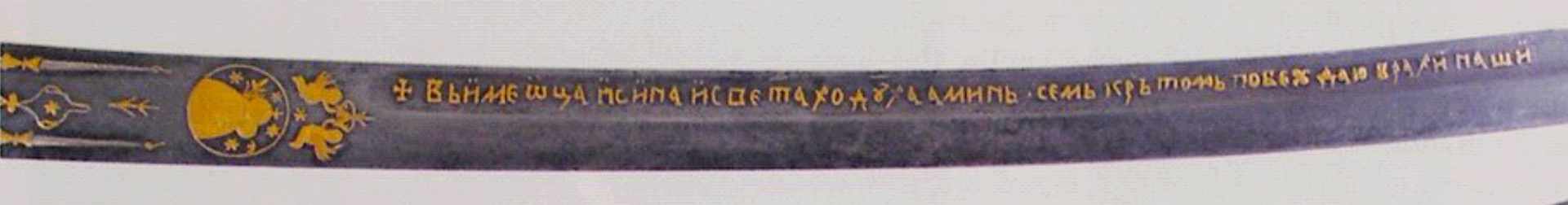 - Греки тоже изображали слова молитвы на своем оружии. Вот только писали они их по-гречески. Но возможно они сделали надпись по-русски на заказ или на продажу.