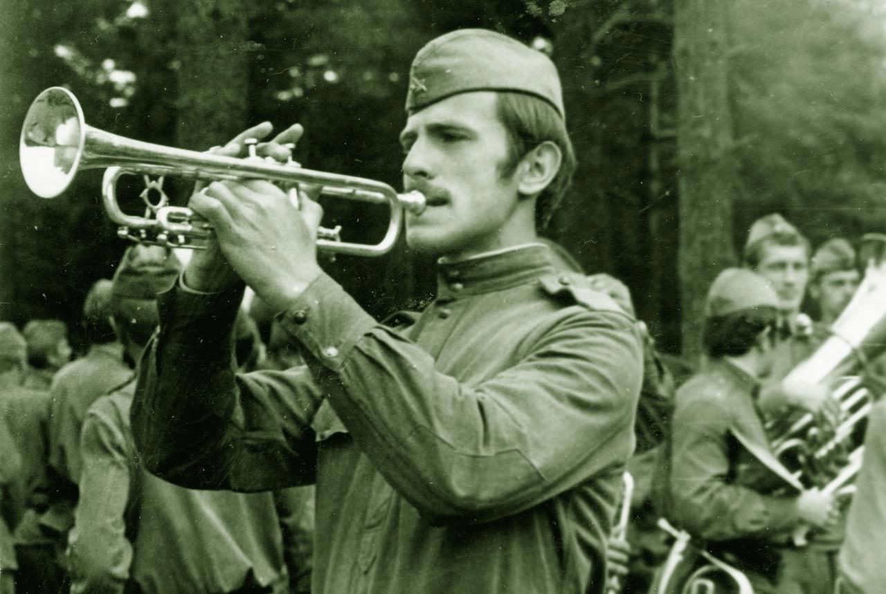 Формировали музвзвод примерно в мае, и тогда наличие сыгранной команды КВНщиков давало им неубиваемые преимущества — не надо искать лабухов по одному, вот готовый оркестр, бери и пользуйся. Случались, правда, исключения — к примеру, Генрих (прозвище такое) был, как бы это сказать, не шибко музыкален и потому приличный инструмент освоить не смог. Неприличный тоже. А расклад такой — всю команду КВН чохом зачисляют в музыканты.