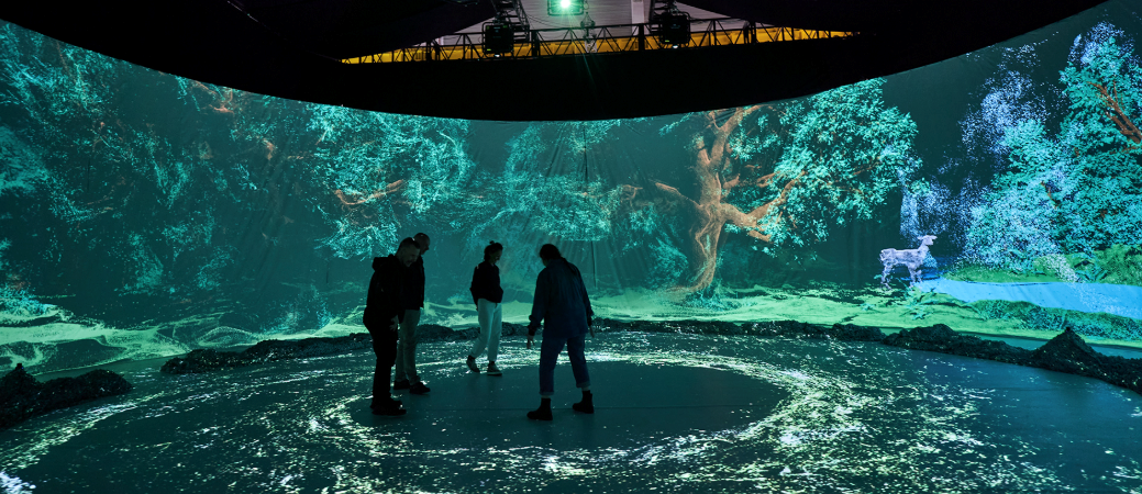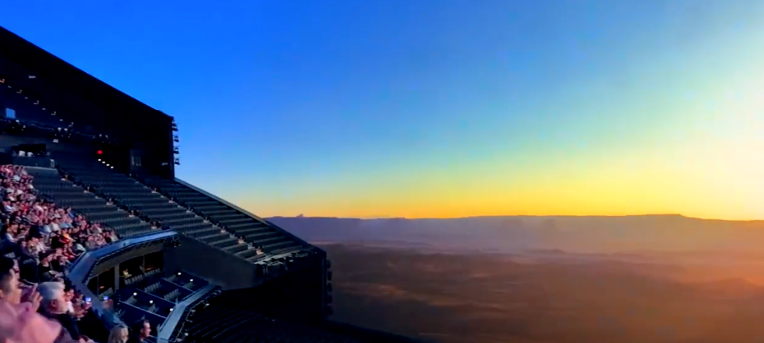 2. Предположим, наш автор хлопнул рюмашку и тем самым поправил свое здоровье, излечился от бредовых и навязчивых идей. Теперь у него команда располагается в центре корабля, на стенах развешанные экраны, хотя мы же уже в будущем, тогда наши стены и есть экраны. Давайте шагнем еще дальше: пол и потолок тоже экран, и мы видим всё, что происходит вокруг нас, как будто мы в космосе без скафандра. Пример из старого, архаичного и унылого 21 века: кинотеатр «Сфера» в Лас-Вегасе.