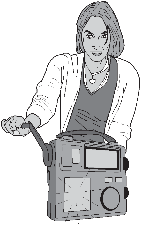 24 Look at the picture below. It shows a hand crank being used to power a radio.