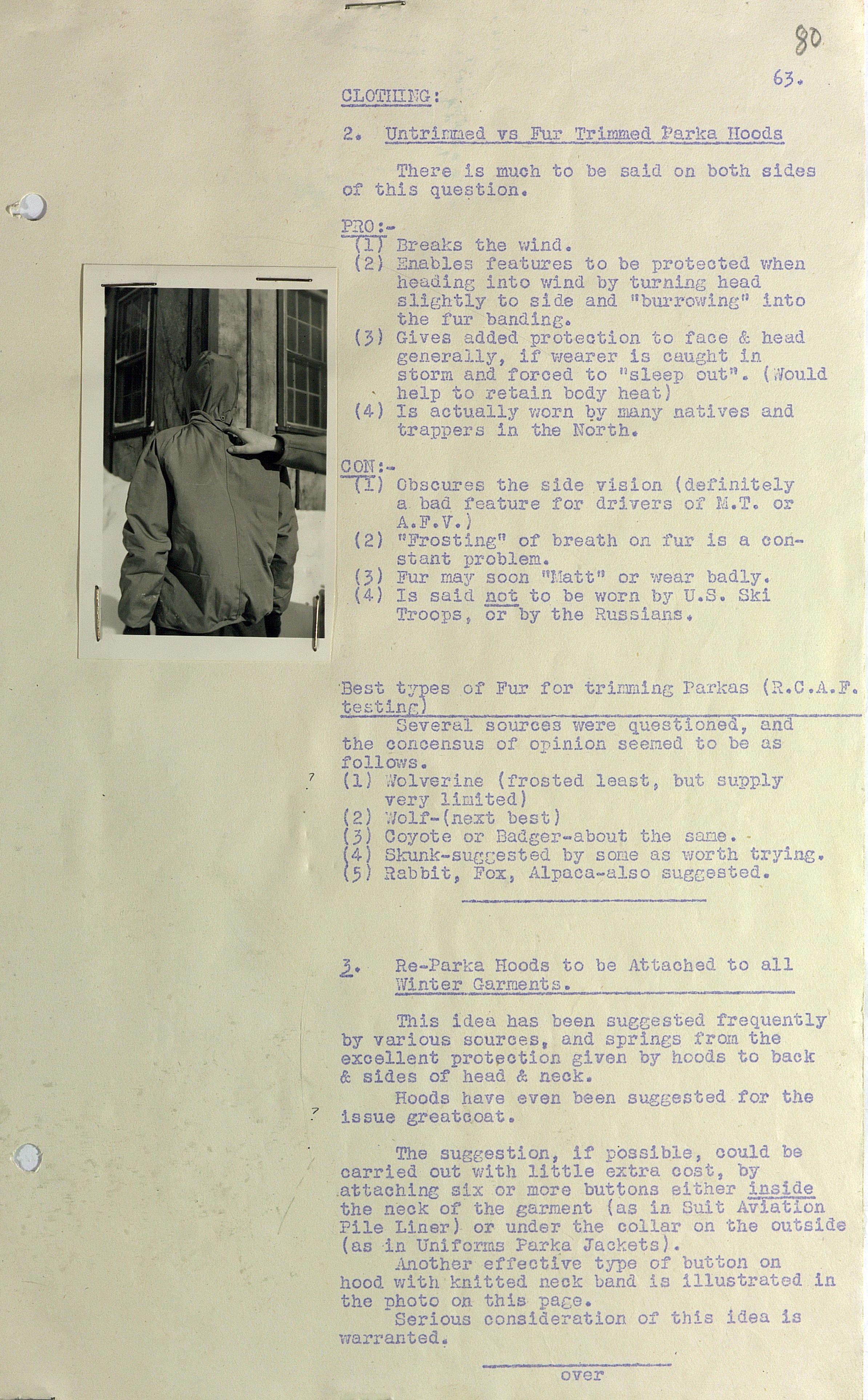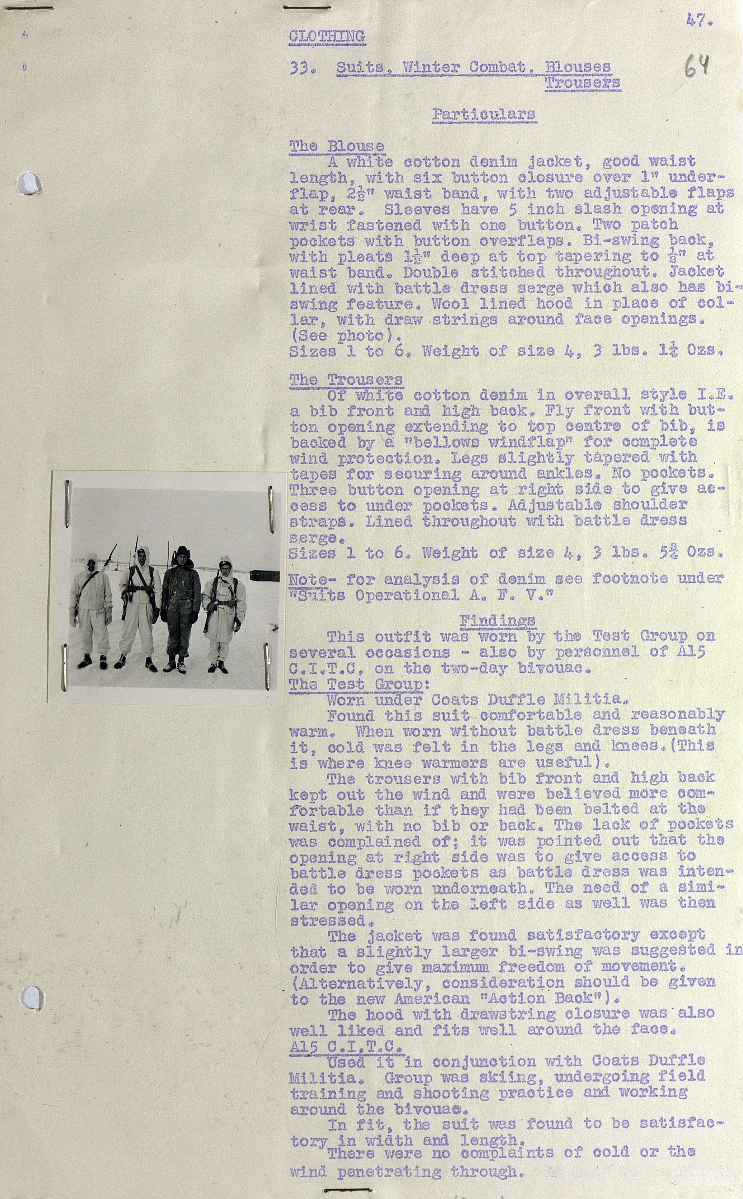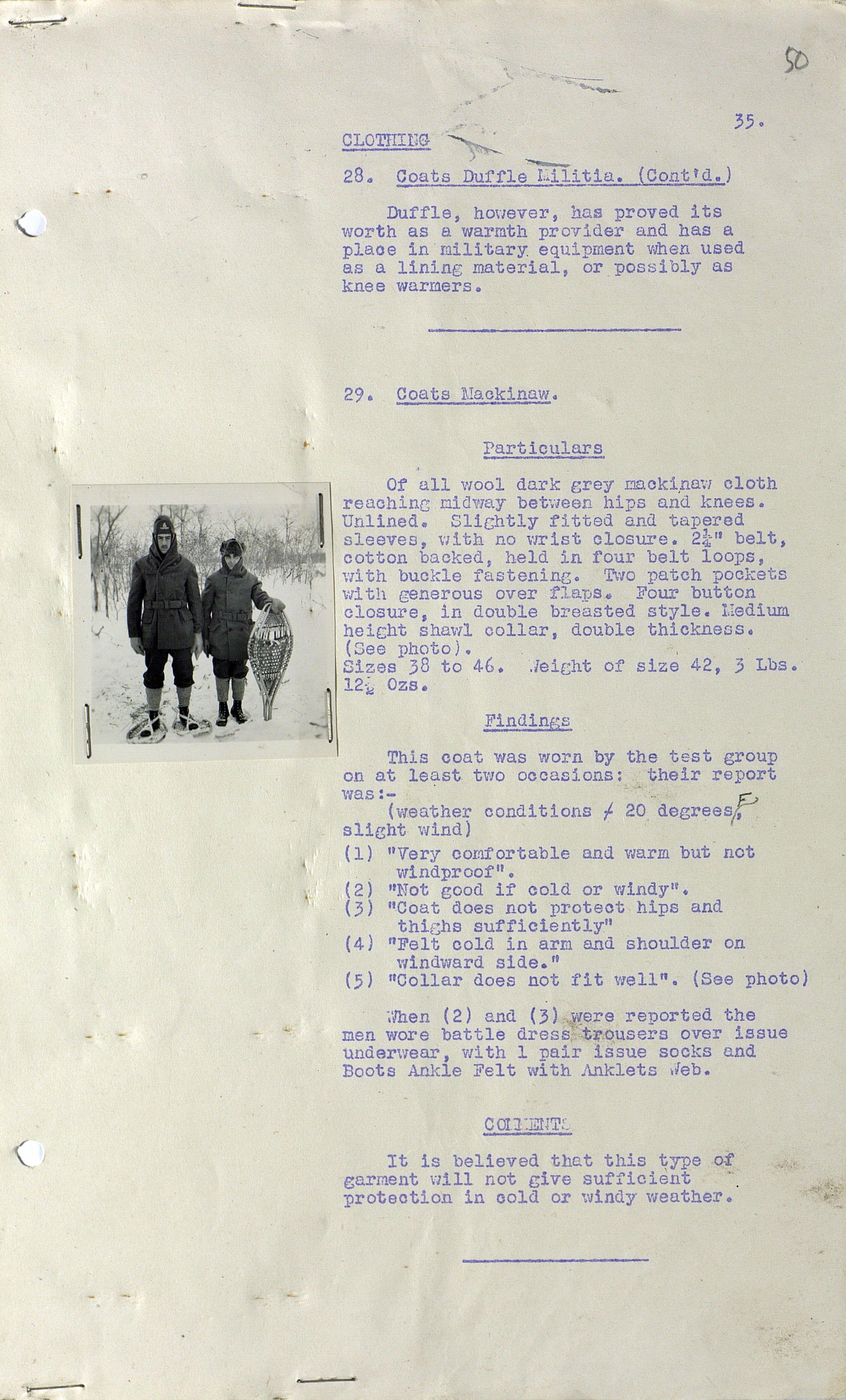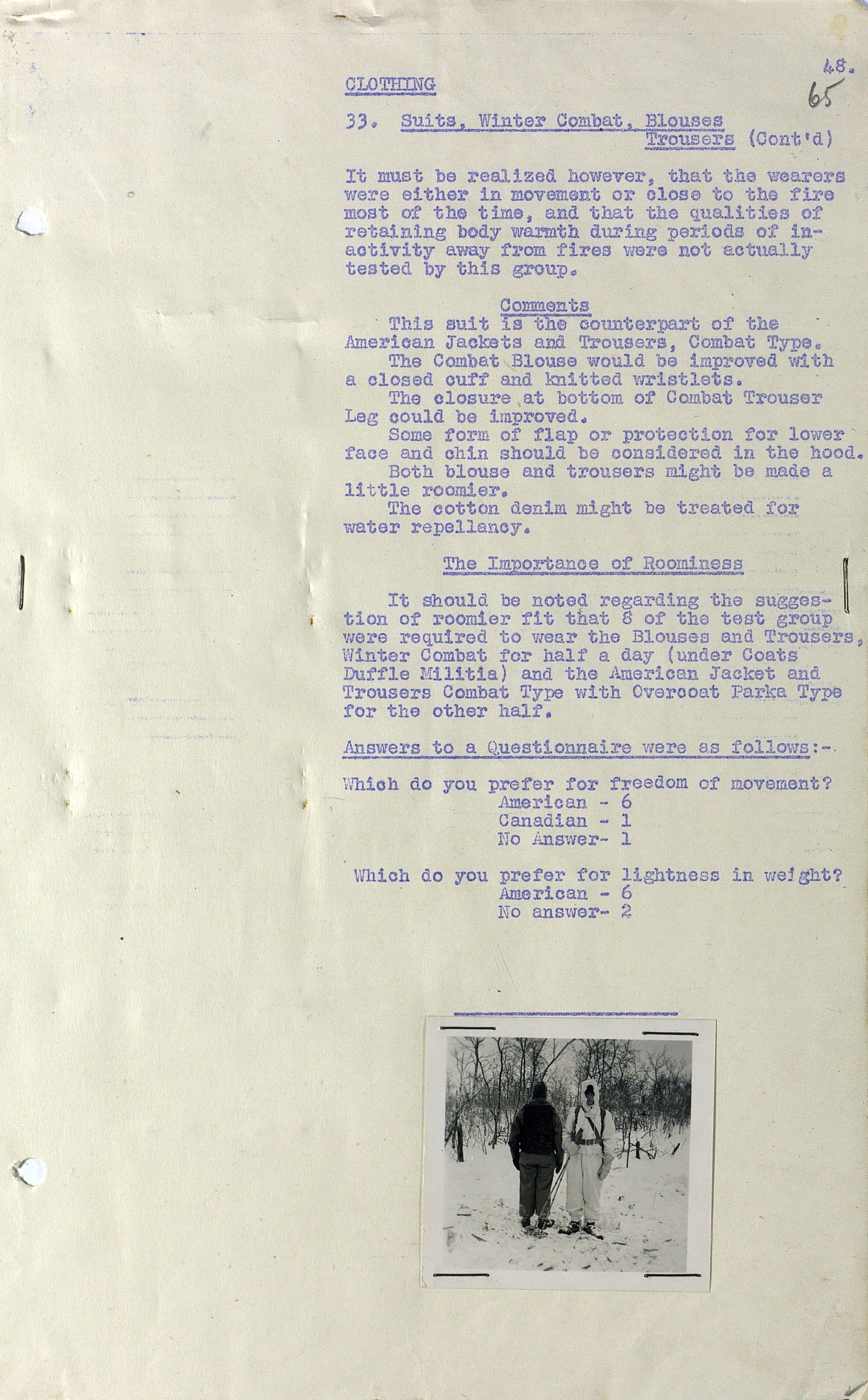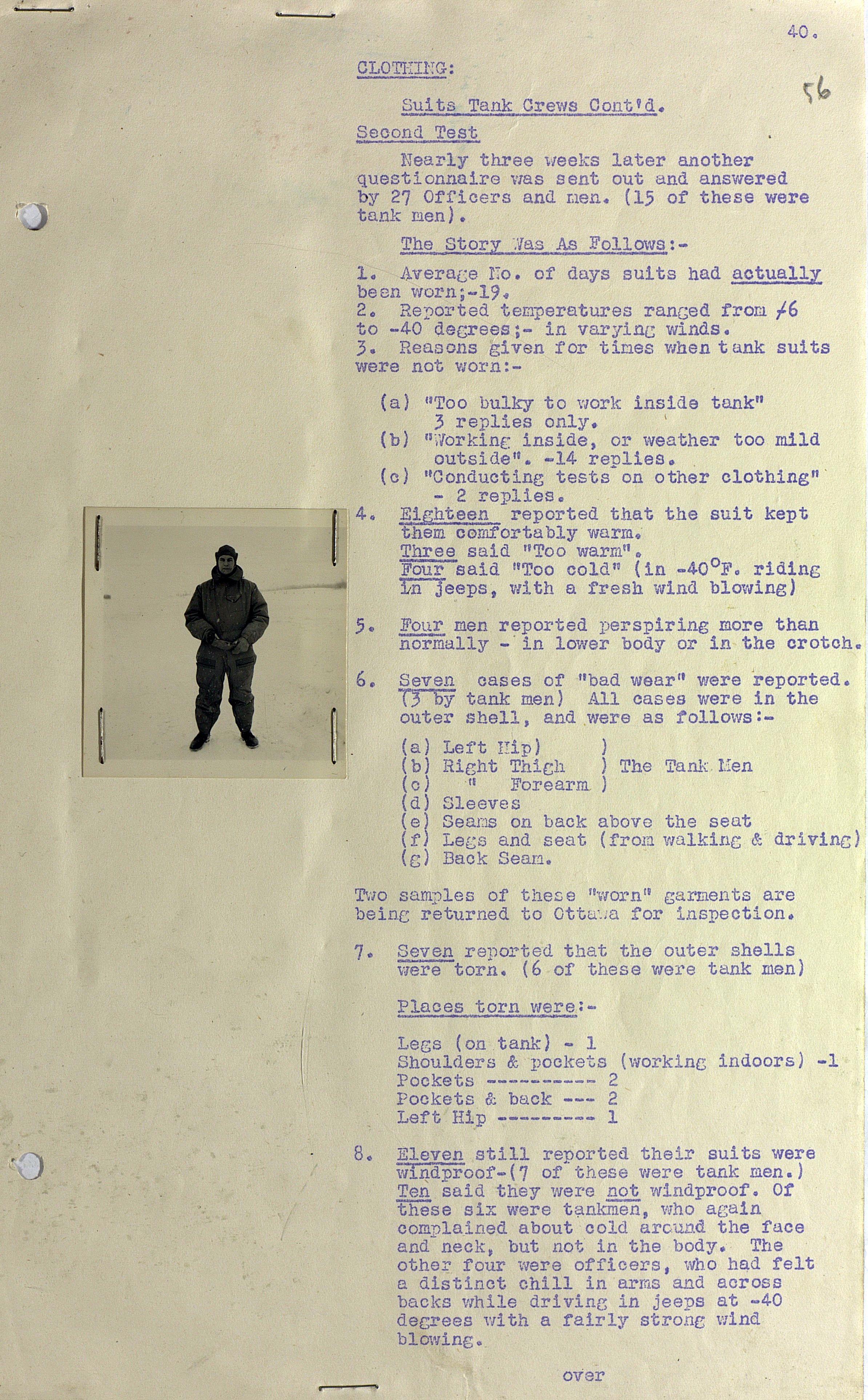 О испытании зимнего обмундирования Канадской Армии (фрагмент доклада). 1944 г.
