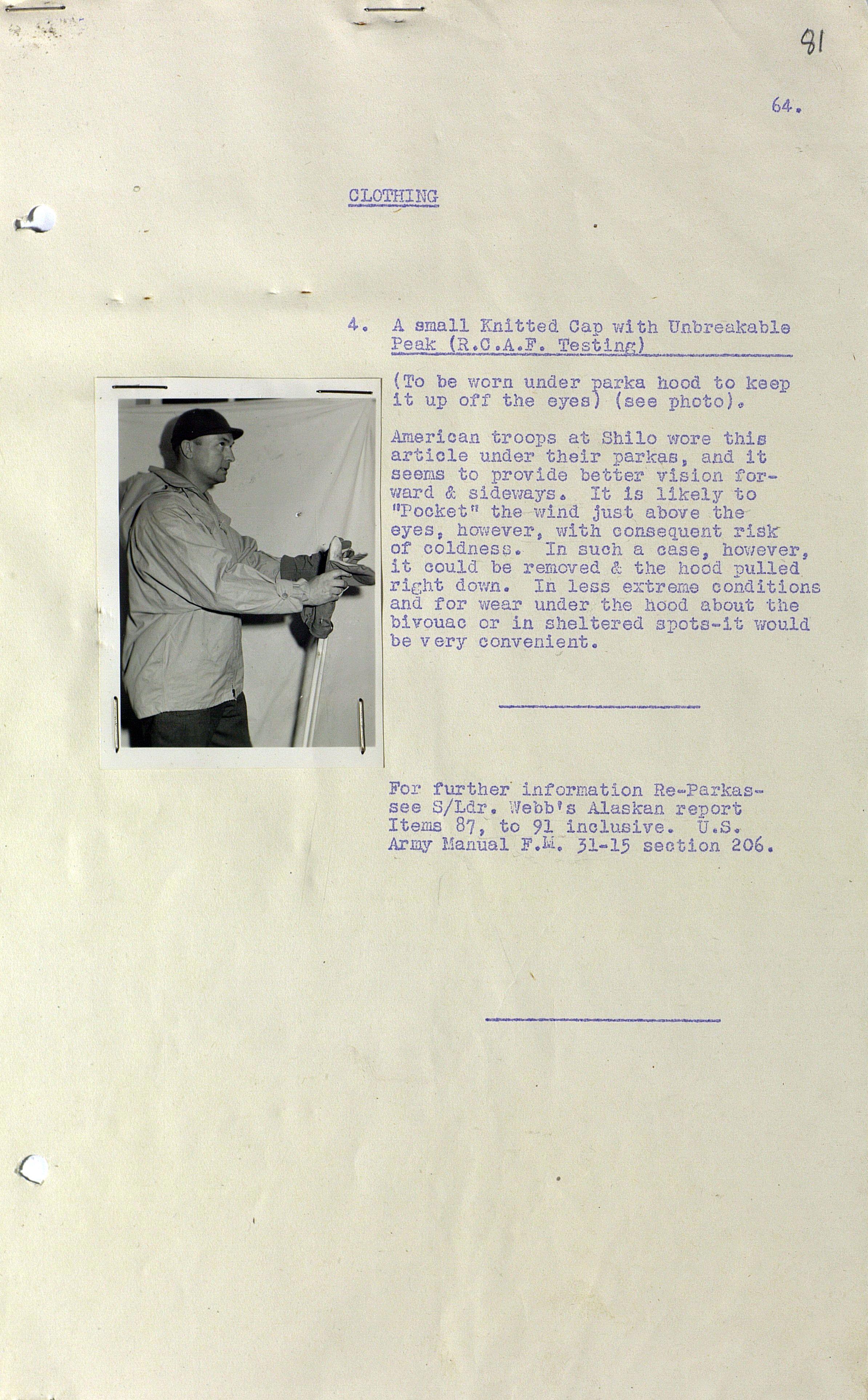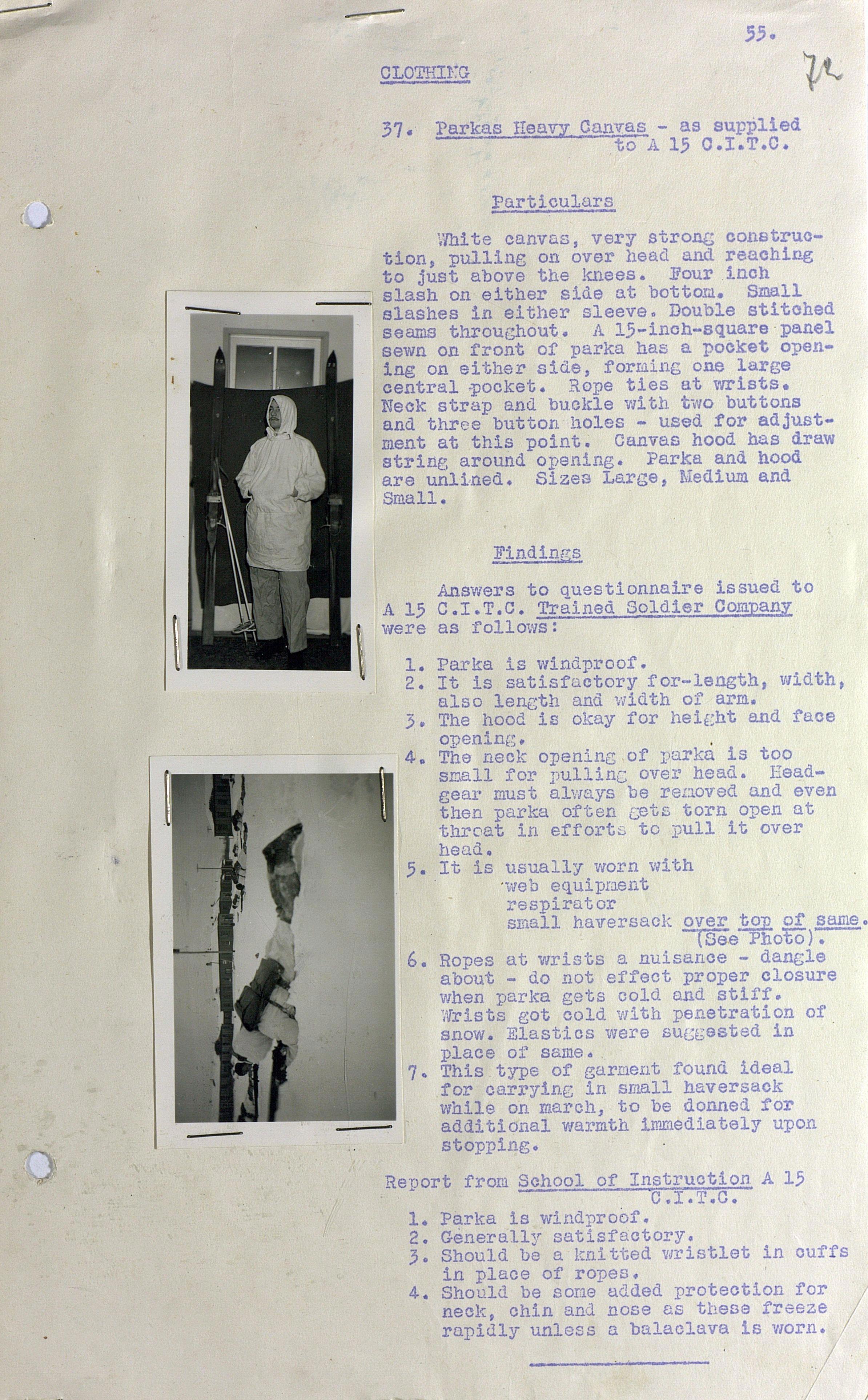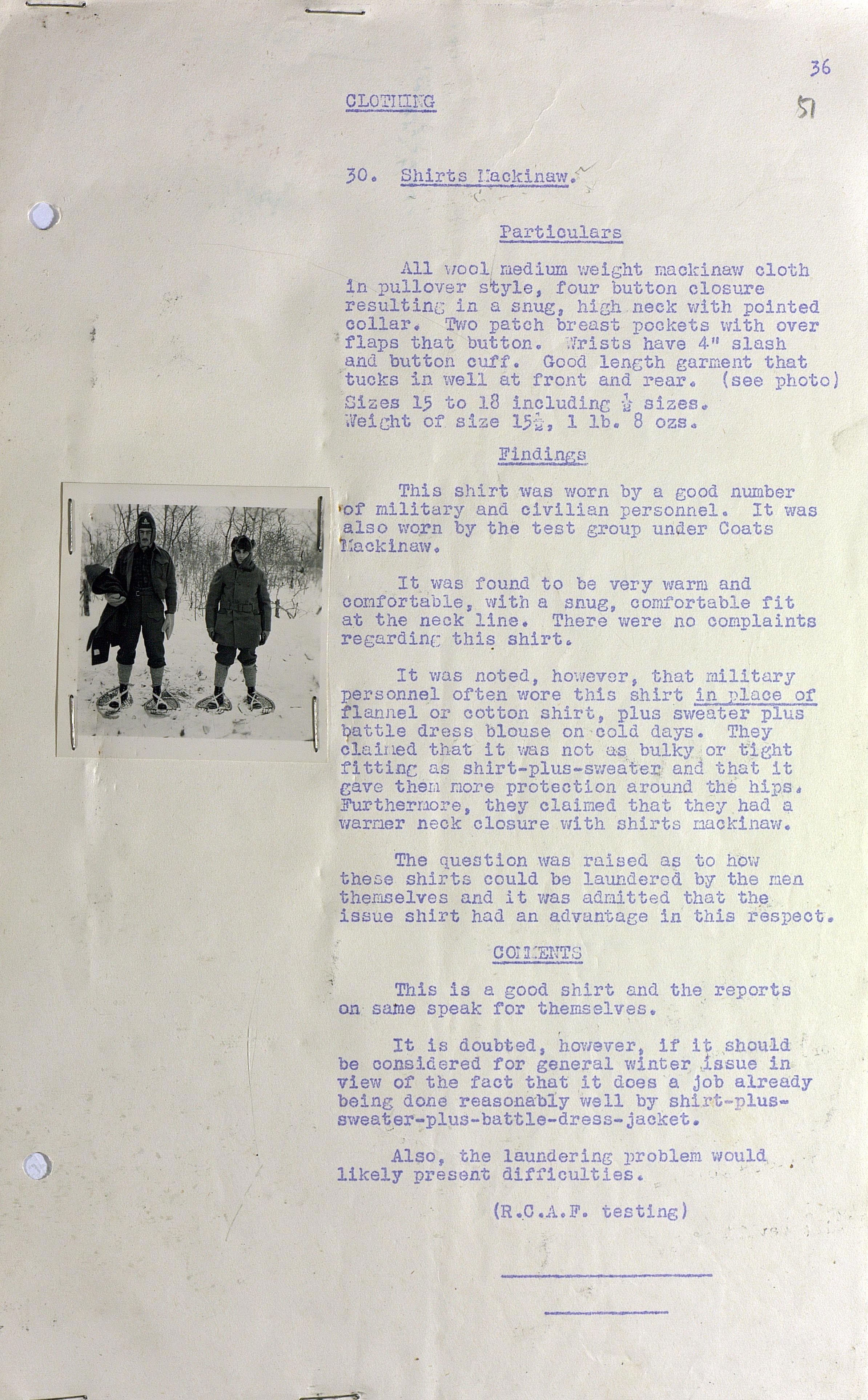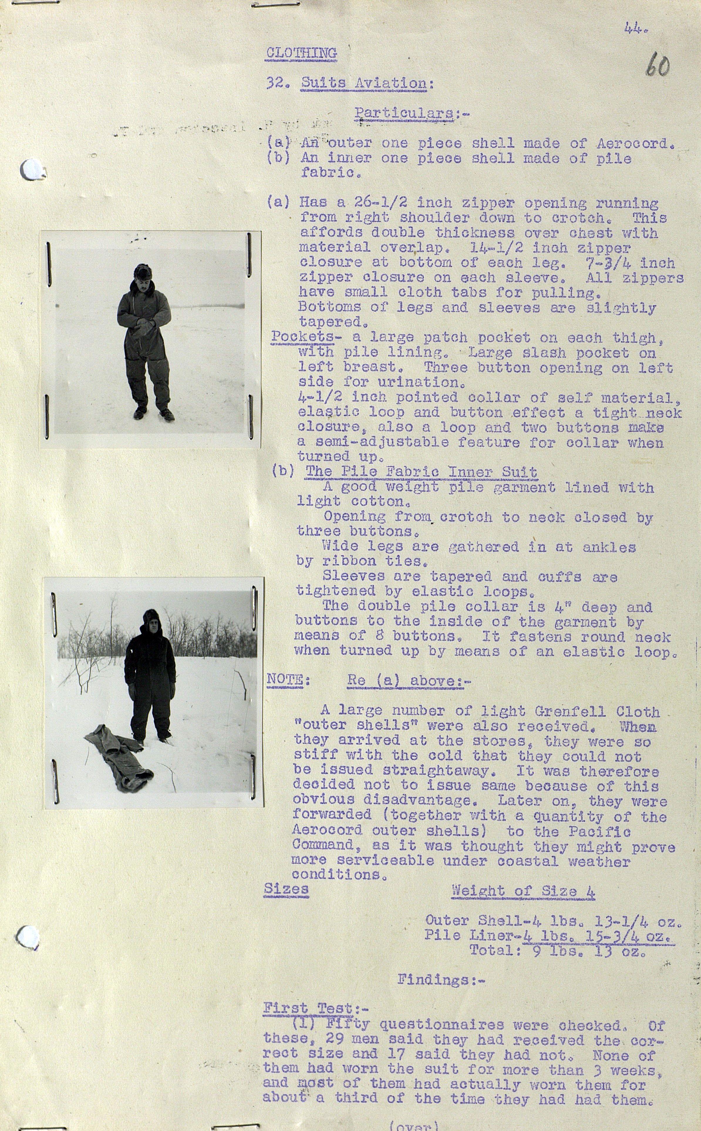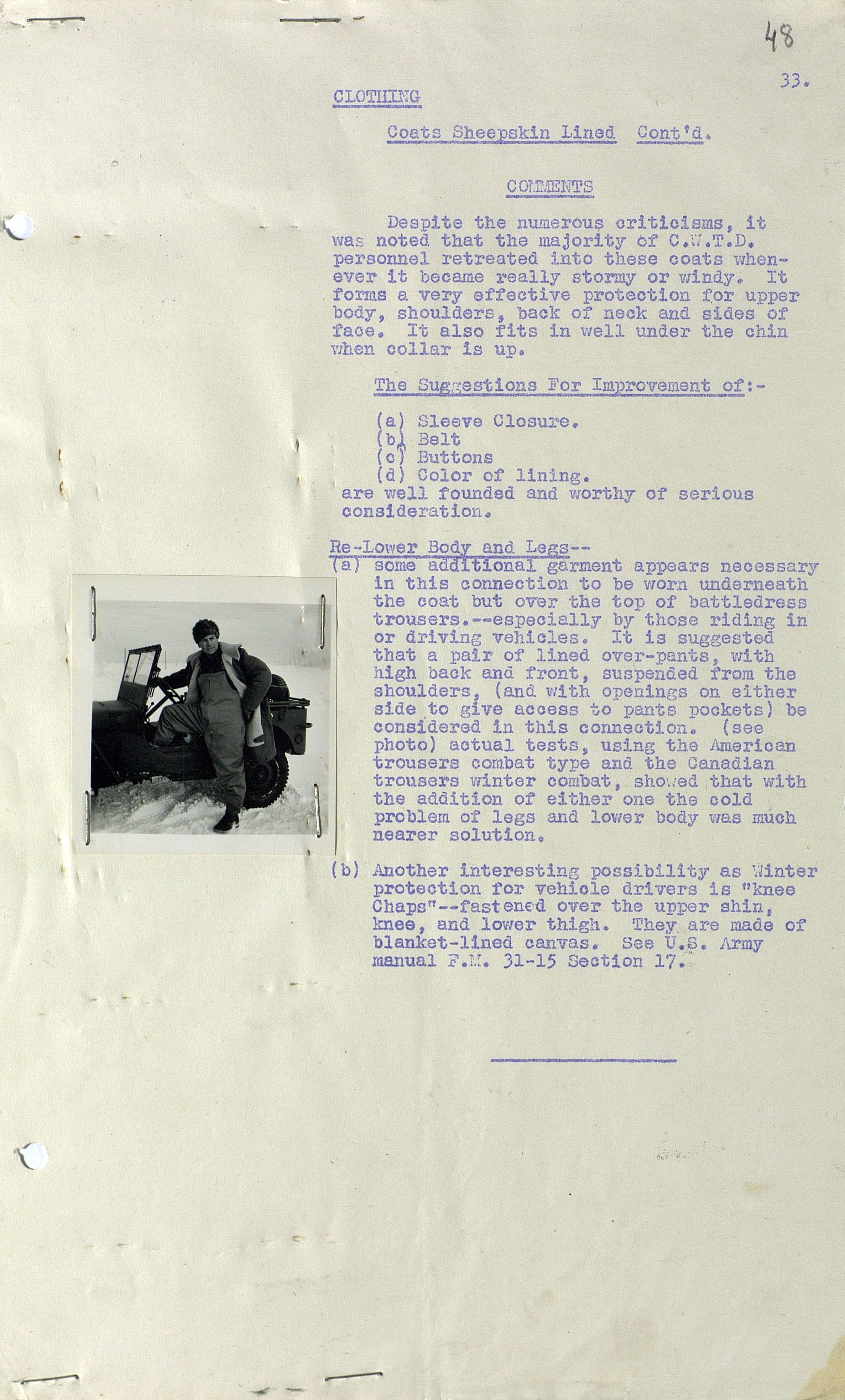 О испытании зимнего обмундирования Канадской Армии (фрагмент доклада). 1944 г.