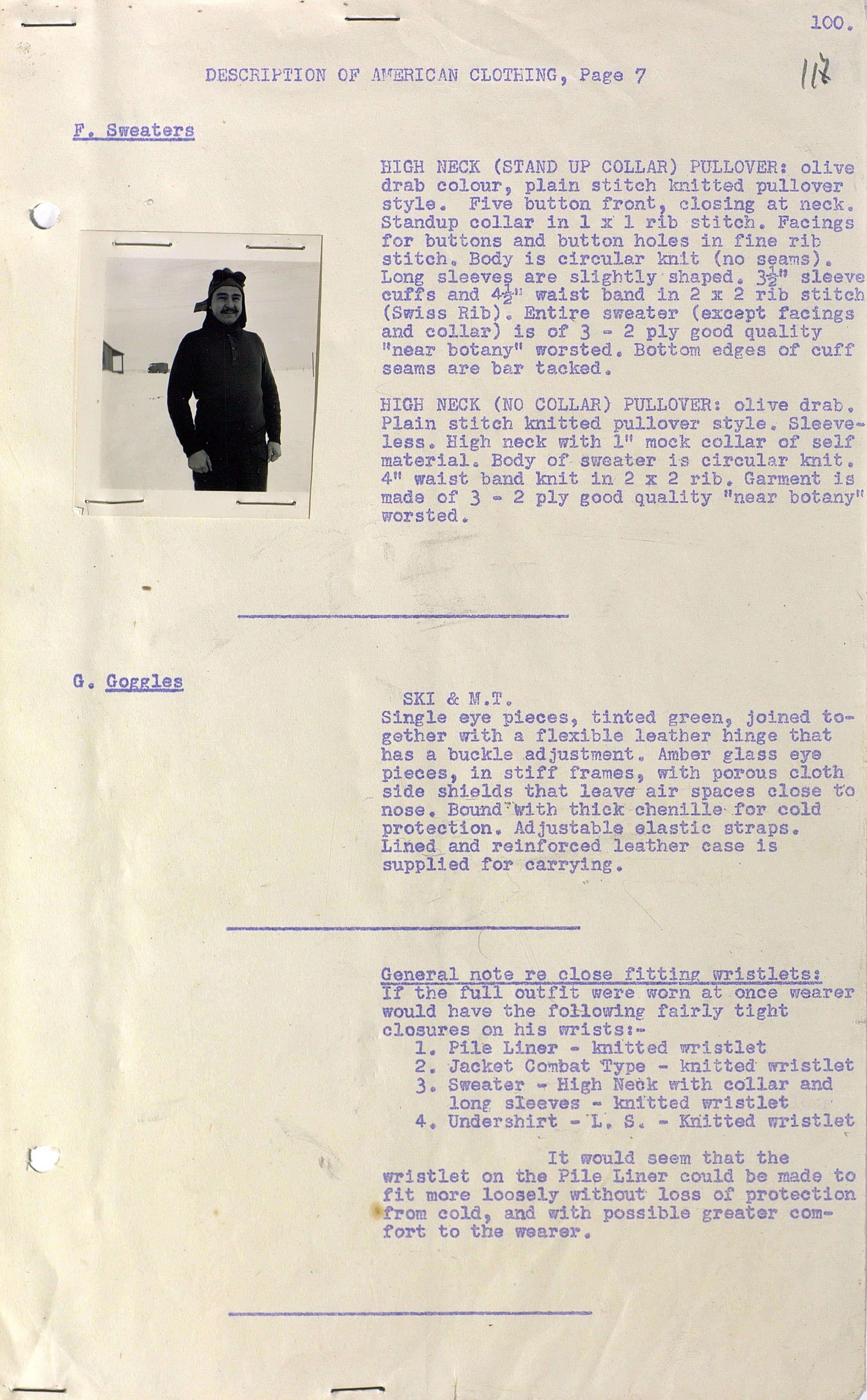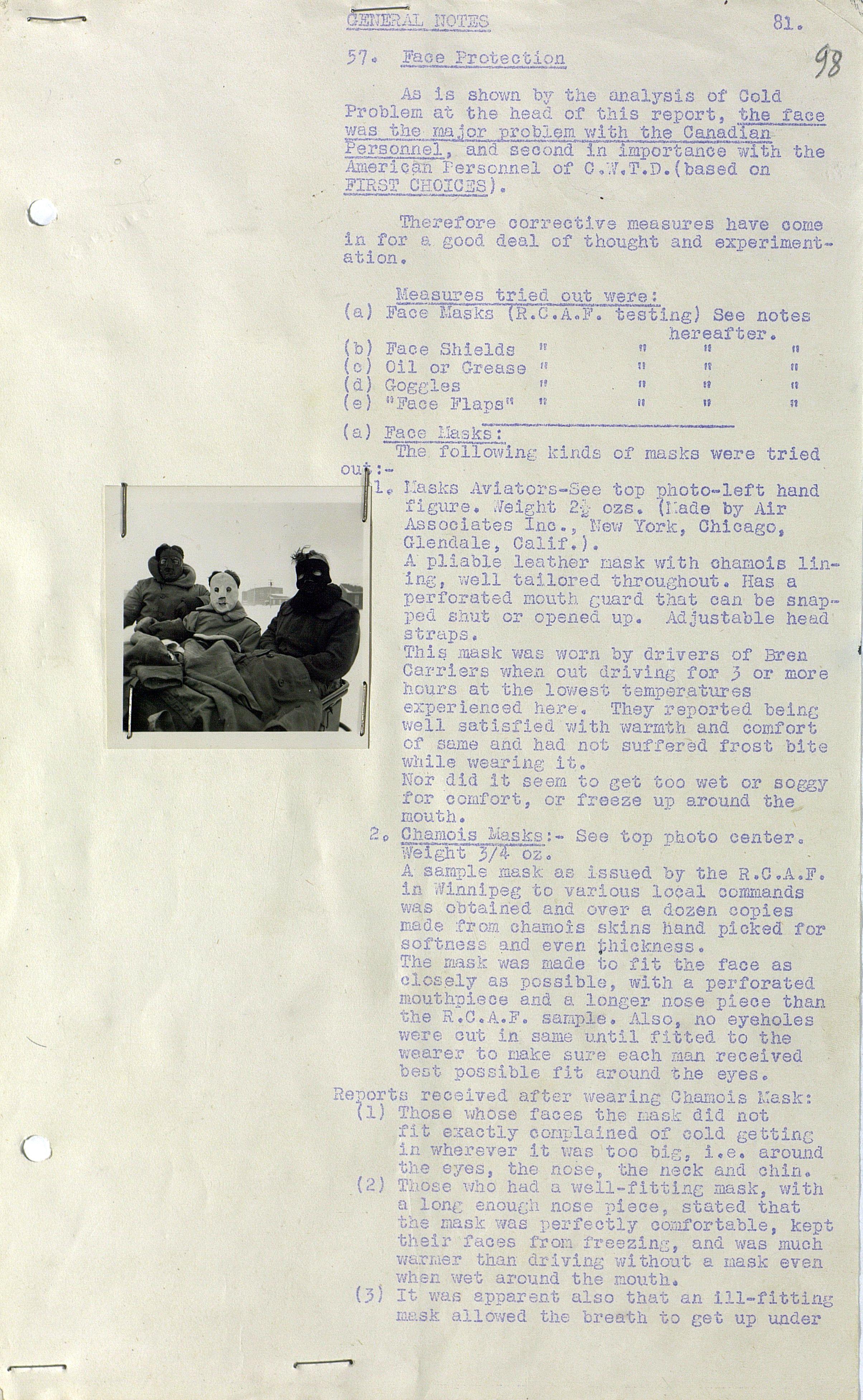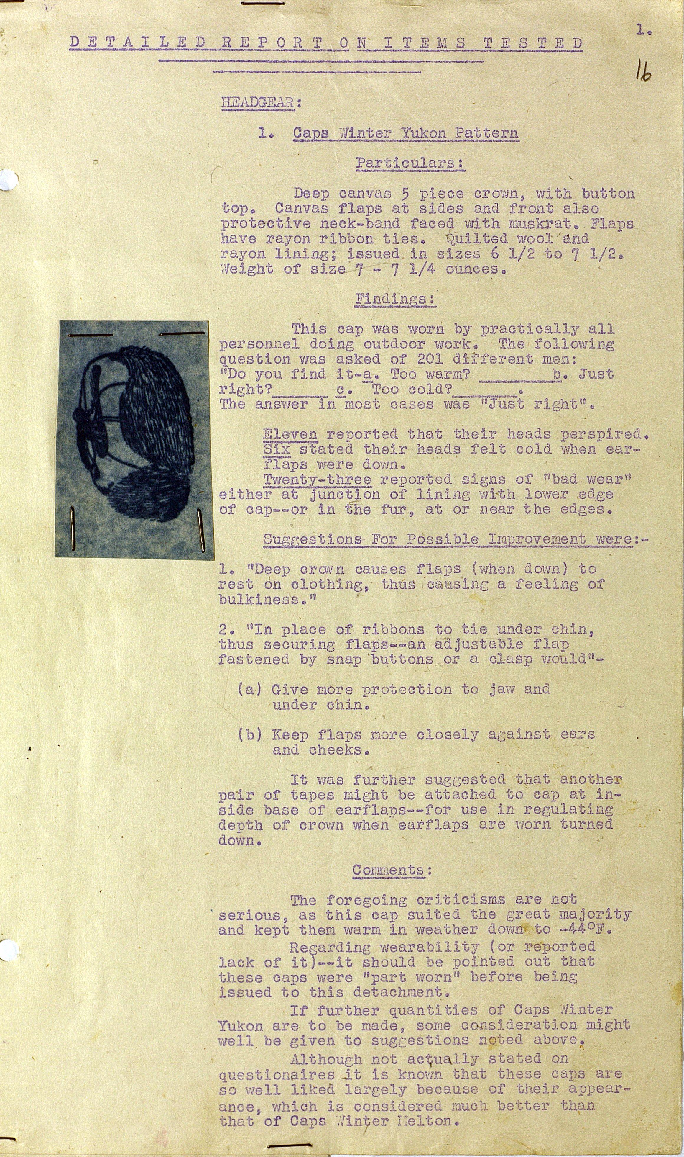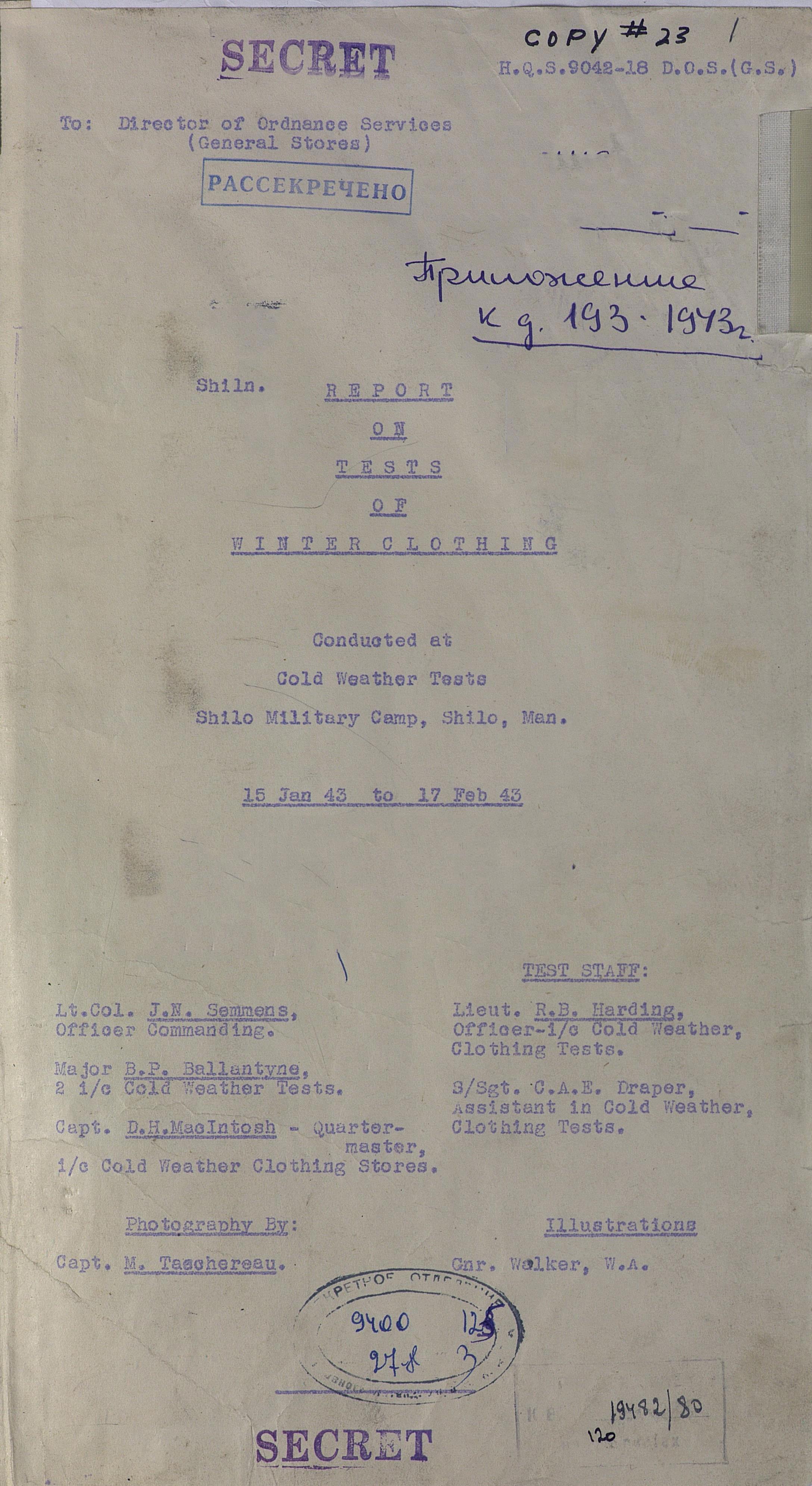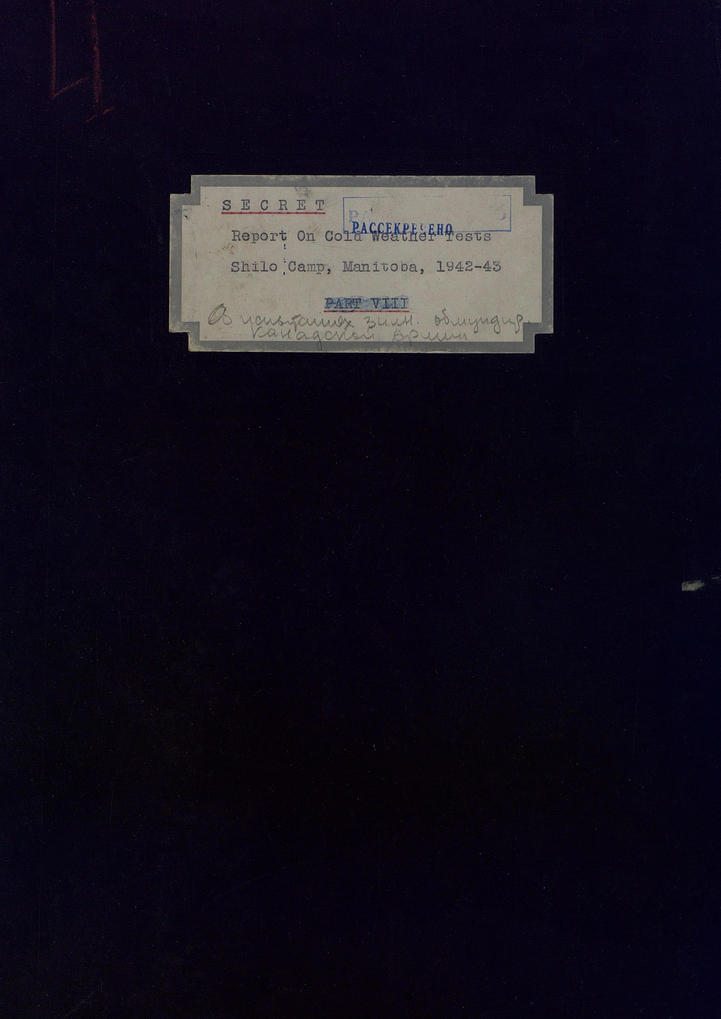 О испытании зимнего обмундирования Канадской Армии (фрагмент доклада). 1944 г.