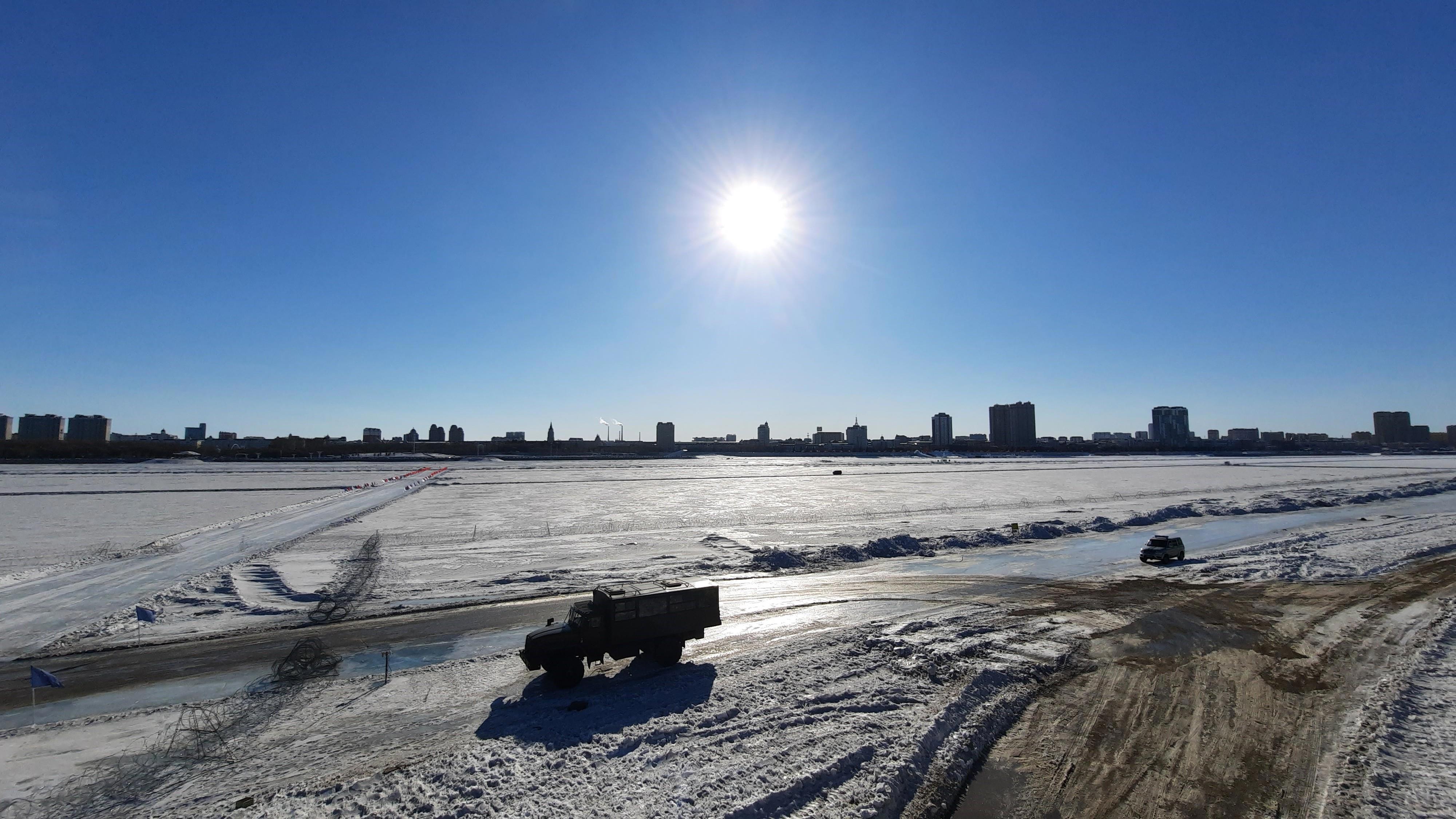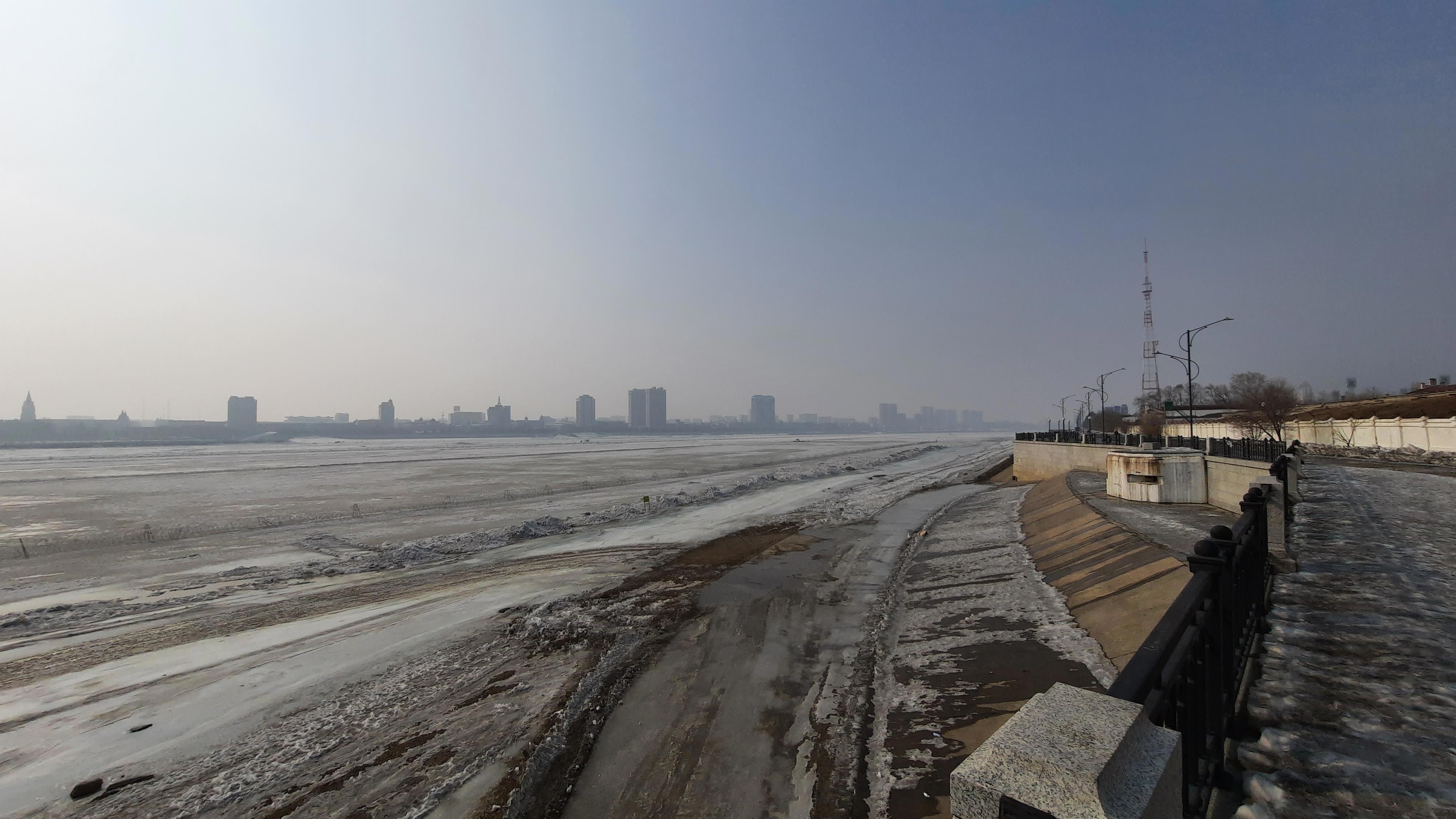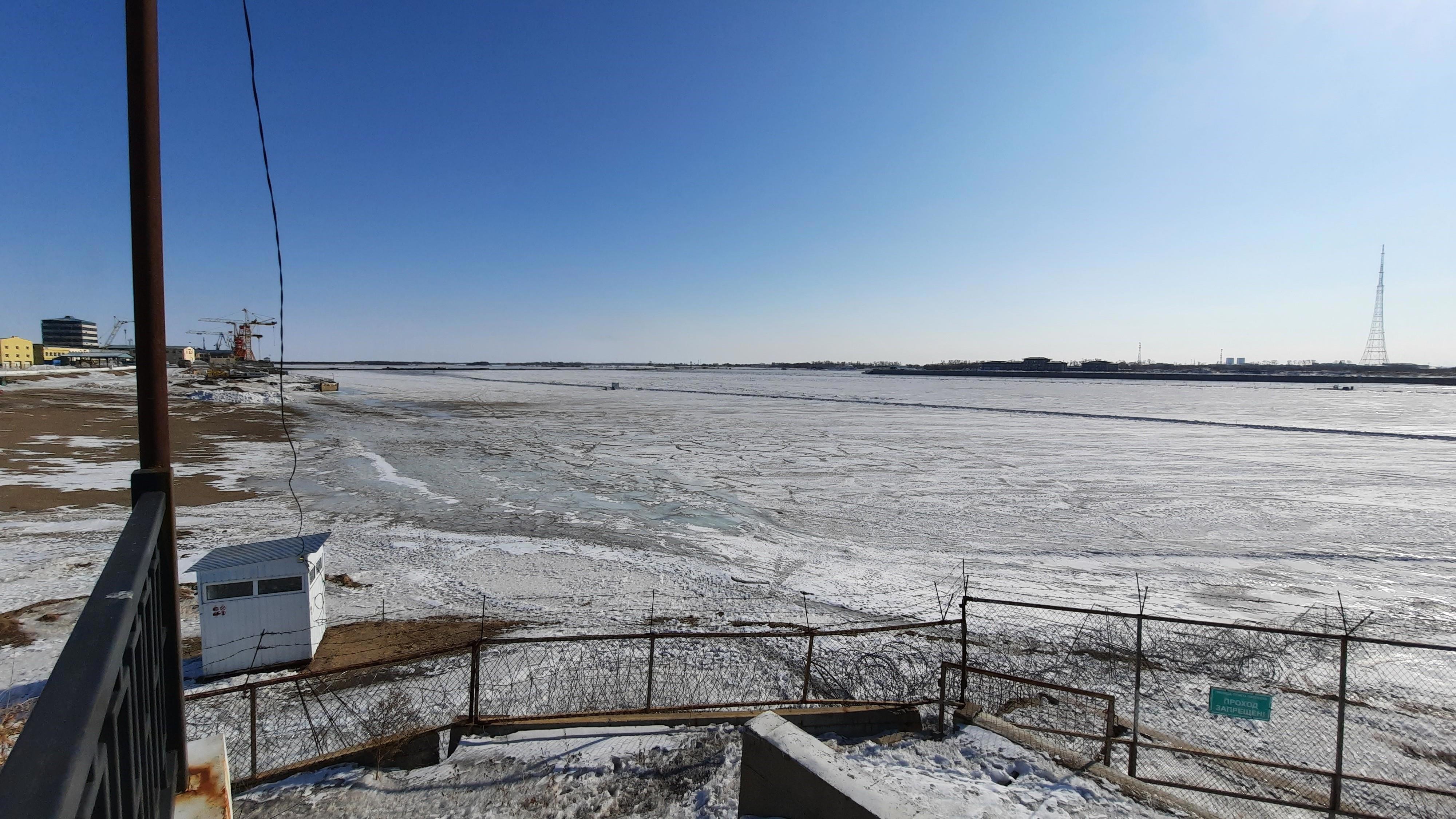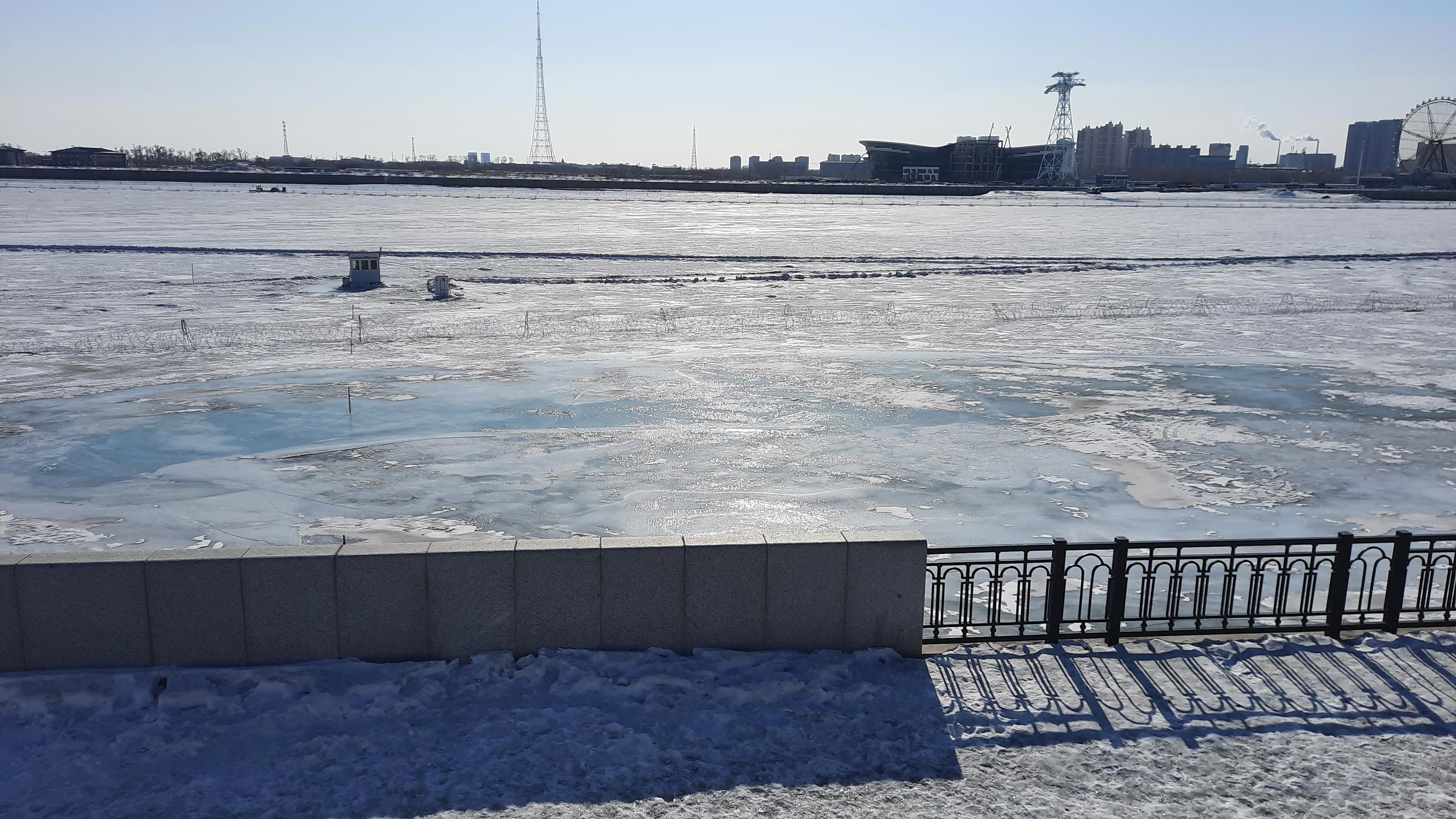 23.02.2025 Потеплело, и я снова начал ходить "с начала" - "от Таможни" (от ул. Театральной, если точно). Явственно видно, что снег испарился как с берега, так и со льда. Небо Родины - яркое!