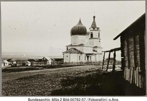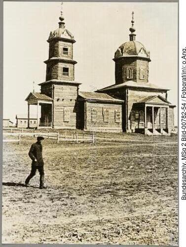 Русская деревня. Все они были в этом районе - деревни бедных, зажиточных крестьян, существование которых было связано с работой в колхозе. Деревянные или глинобитные хижины были построены вплотную друг к другу. Но от противоположной стороны их отделяла очень широкая площадь - деревенская улица. Однако: нет дороги по западноевропейским понятиям. Конные повозки превратили площадь в дорогу. В местности не было недостатка в пространстве, тем теснее было в хижинах. Можно было позволить себе только самые маленькие комнаты, чтобы в суровые русские зимы в доме было тепло. В то время на стене время от времени можно было увидеть религиозный образ. Самовар времен царизма был в основном куплен после революции, которая не пощадила ни одну деревню. Да и чая почти не осталось. Но тут помогли ягоды и зелень. Колхозы в то время так скудно снабжали сельское население продуктами питания, что восприимчивость к болезням возросла до ужасающей степени. Кроме того, медицинское обслуживание все еще находилось в очень тяжелом состоянии. Крестьянину в те времена не позавидуешь.