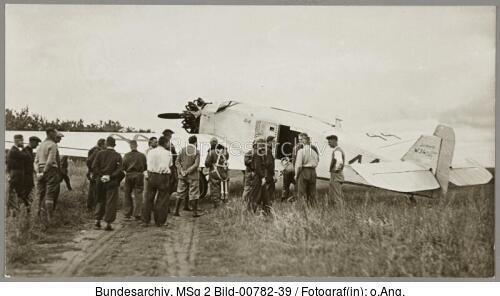 Немецкие самолеты для наших наземных испытаний. Боевых действий с помощью самолетов в Первой мировой войне еще не было. Мы должны начать с этого в Томке. Были доступны (на фото справа налево) HD 40 (Хейнкель), HD 21 (Хейнкель) и F 13 (Юнкерс). Два последних самолета прибыли к нам в разобранном виде по железной дороге, а HD 40 - по воздуху. Оснащение этих машин новыми задачами означает для бортинженера, заводского мастера и авиатехников текущие дополнительные конструкторские и монтажные работы.