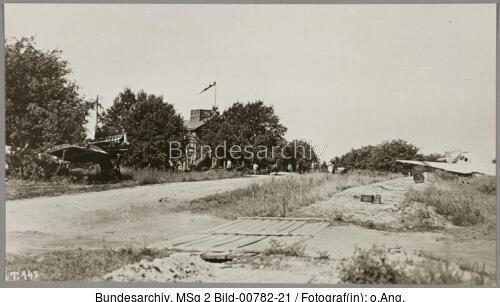 HD 40 - наша самая большая боевая машина, готовая к взлету с аэродрома Томка. Она стала носителем авиабомб и резервуаров с жидкостями. Командир воздушного судна, запечатленный справа, указывает размер воздушного судна.