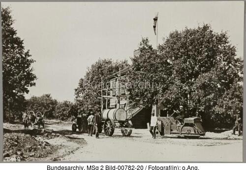 Пропускной пункт с водонапорной башней. Там, где наш склад примыкал к аэродрому и где начиналась дорога на Шиханы, русскими плотниками был построен сторожевой пост. Задача конных казаков заключалась в защите предприятия от населения, пресечении попыток иностранного шпионажа, а также в том, чтобы следить за нами самими. Без специального разрешения русского коменданта, который разбил свой дом в 200 м от нашего лагеря, нам не разрешалось покидать рабочие места и экспериментальные площадки. Первые месяцы мы были так заняты достройкой склада, что только господа из нашей администрации по специальному разрешению иногда ездили в Вольск за рыбой или свежими овощами. Через несколько месяцев условия были смягчены, мы могли ездить в близлежащие районы по воскресеньям и даже кататься на лошадях охраны. К жесткому седлу надо привыкать! На крыше сторожки стояла огромная кадка с водой, из которой Томка получала воду. Туда наш агрегат перекачивал грунтовые воды по водопроводным трубам, которые мы особенно глубоко закопали.