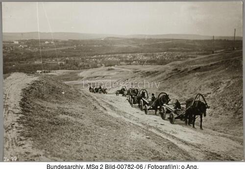 Протяженные дороги к северу от Вольска. Упряжка лошадей в холмистой местности.