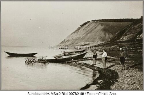 Северный берег Волги. Земля на этой северной стороне возвышается на 70 м над уровнем воды Волги, часто глубоко изрезанная сильными весенними таяниями снега. Там, где прямо на берегу реки неглубокие, часто покрытые песком участки позволяют рыбакам пришвартовывать лодки, нередко можно встретить купальщиков из ближайших окрестностей. Противоположный берег, который здесь не виден, везде пологий.