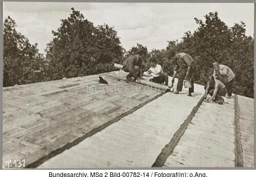 Потолочные перекрытия. Особая забота, которую мы проявили, чтобы крыша была устойчива к снегу и защищала от талой воды, была вознаграждена. Бараки выдерживали русскую летнюю и зимнюю погоду в течение 4 лет без каких-либо дефектов. Наружные и внутренние стены были образцово покрашены нашими необученными русскими помощниками, выкрашены немецкой краской, расписаны с русскими песнями.