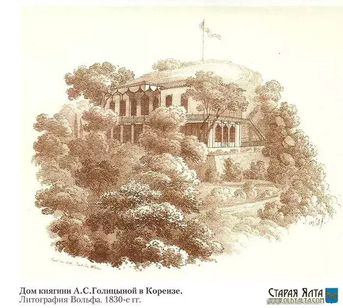 Первой имения в Кореизе была княгиня Анна Сергеевна Голицына. Это была весьма эксцентричная дама, особенно для 19 века.