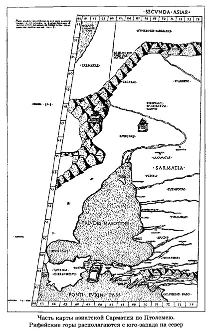 Карта Уральских гор, Сарматия по Птолемею (ок. 100 г.н.э.)
