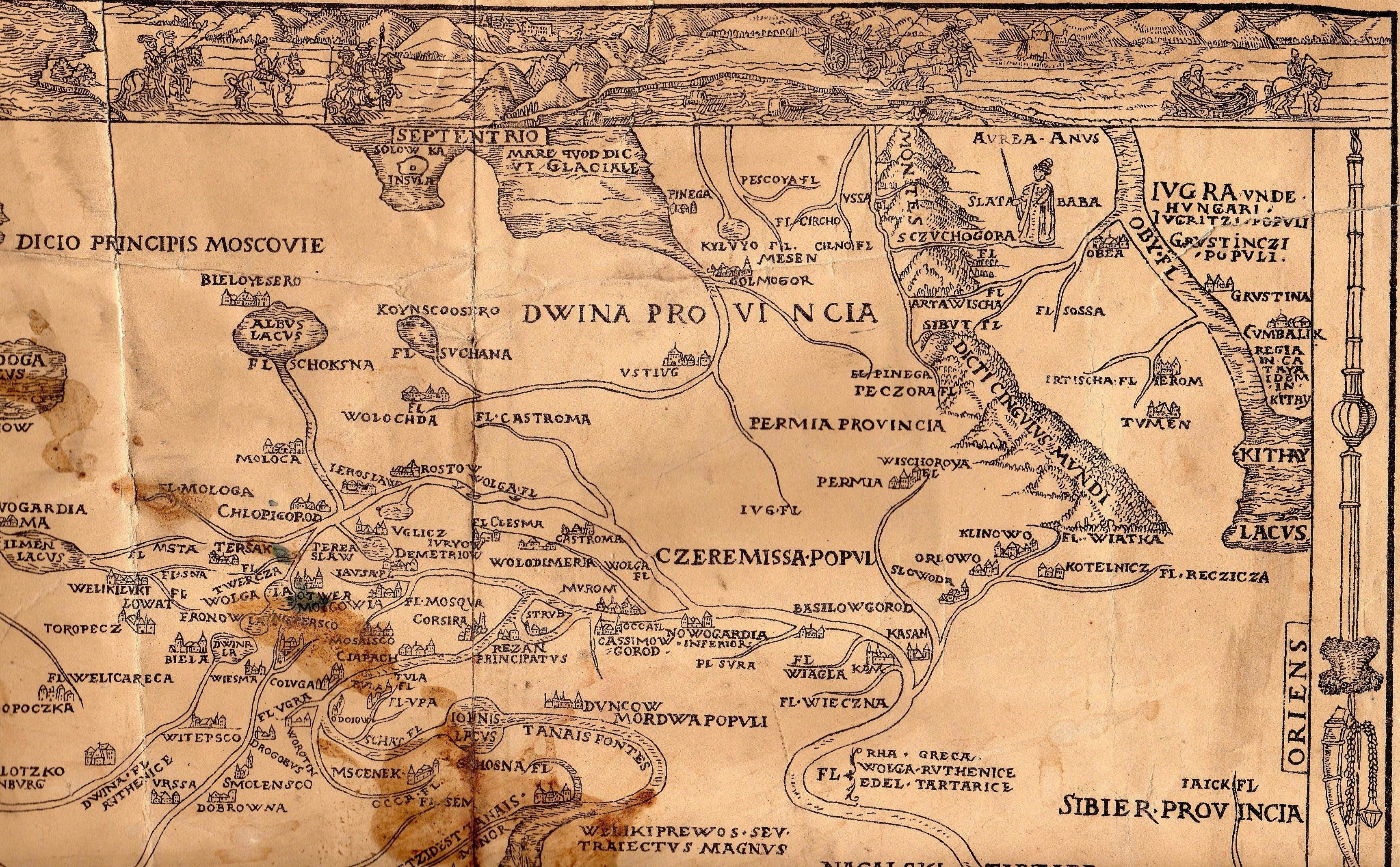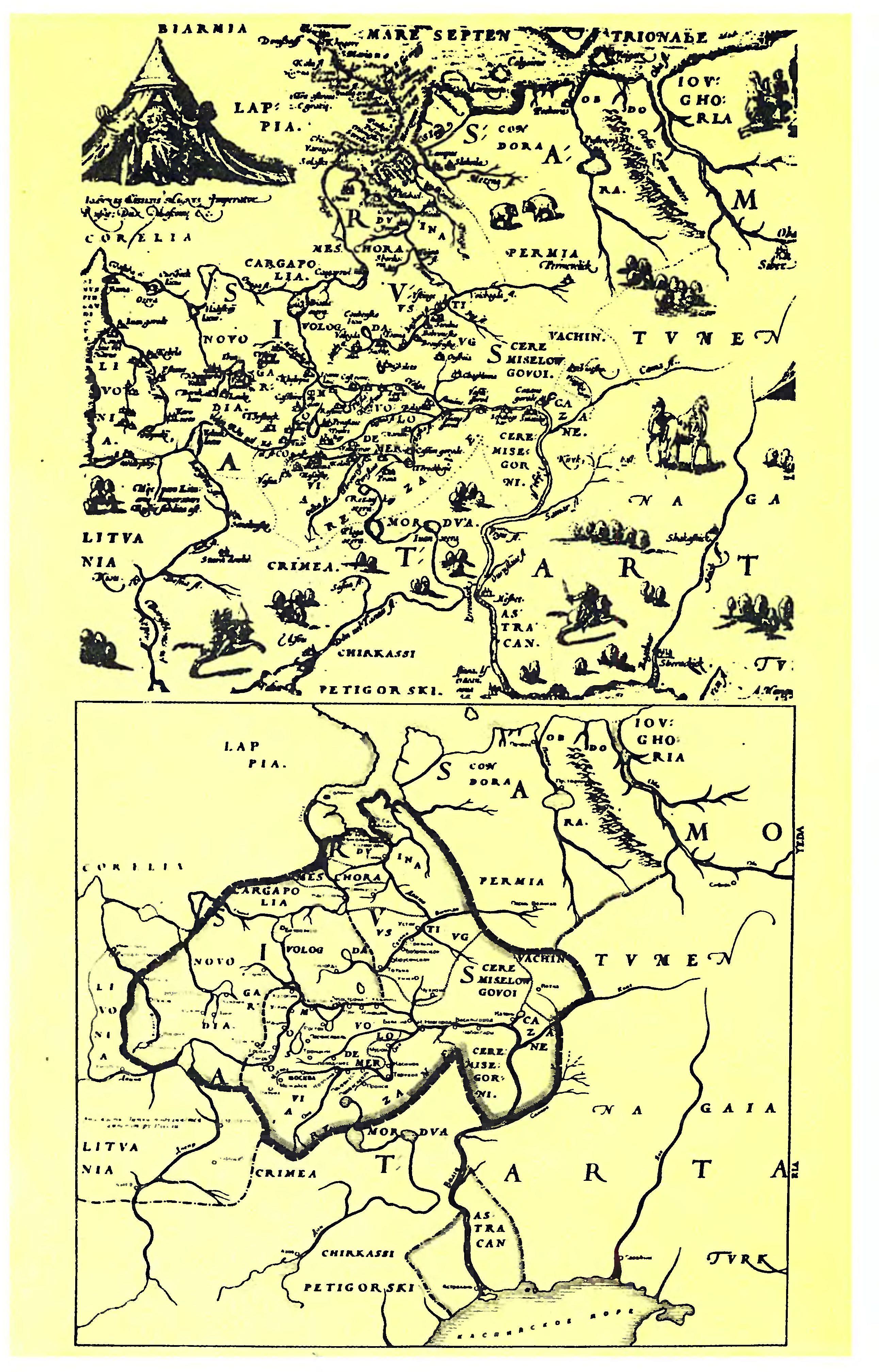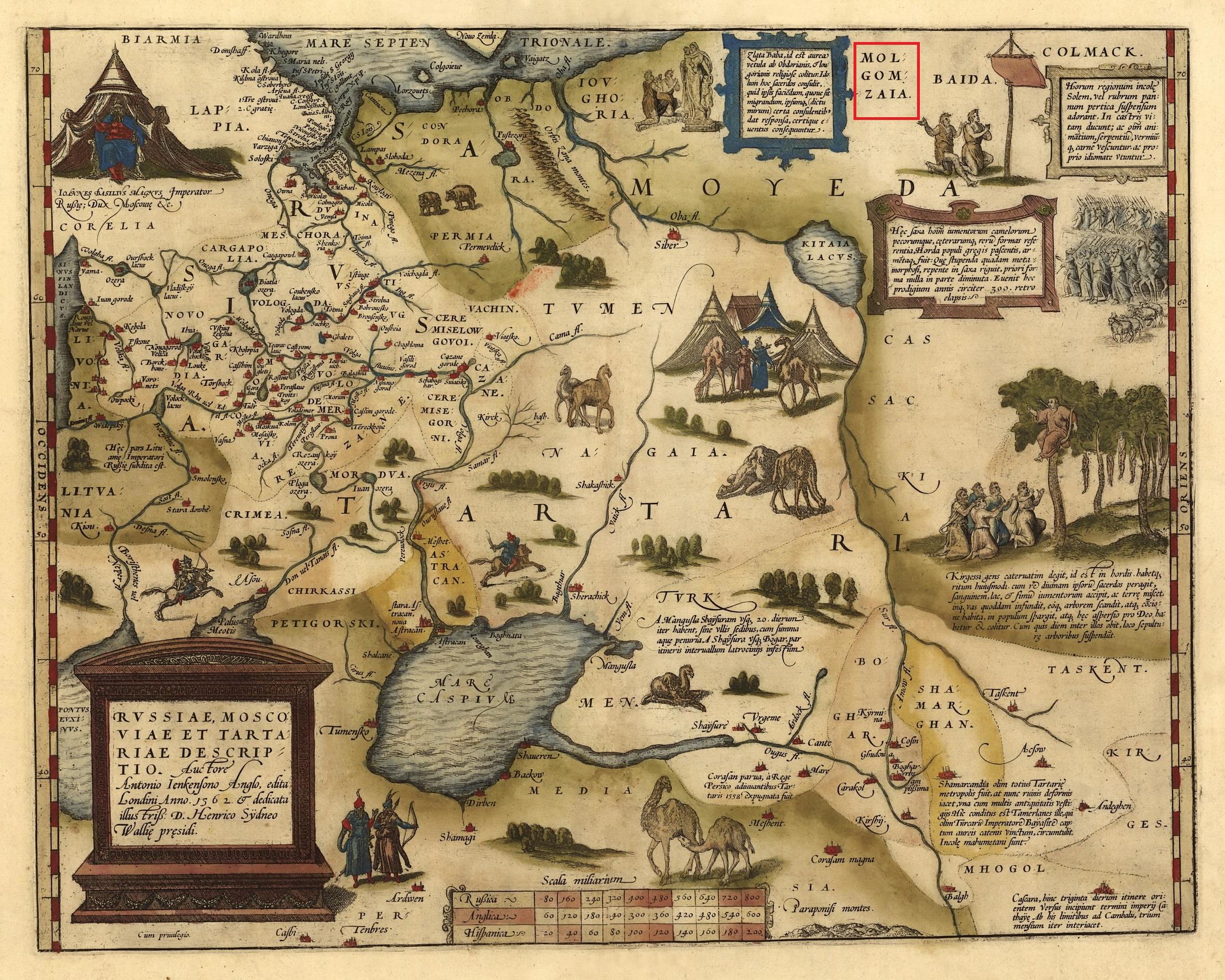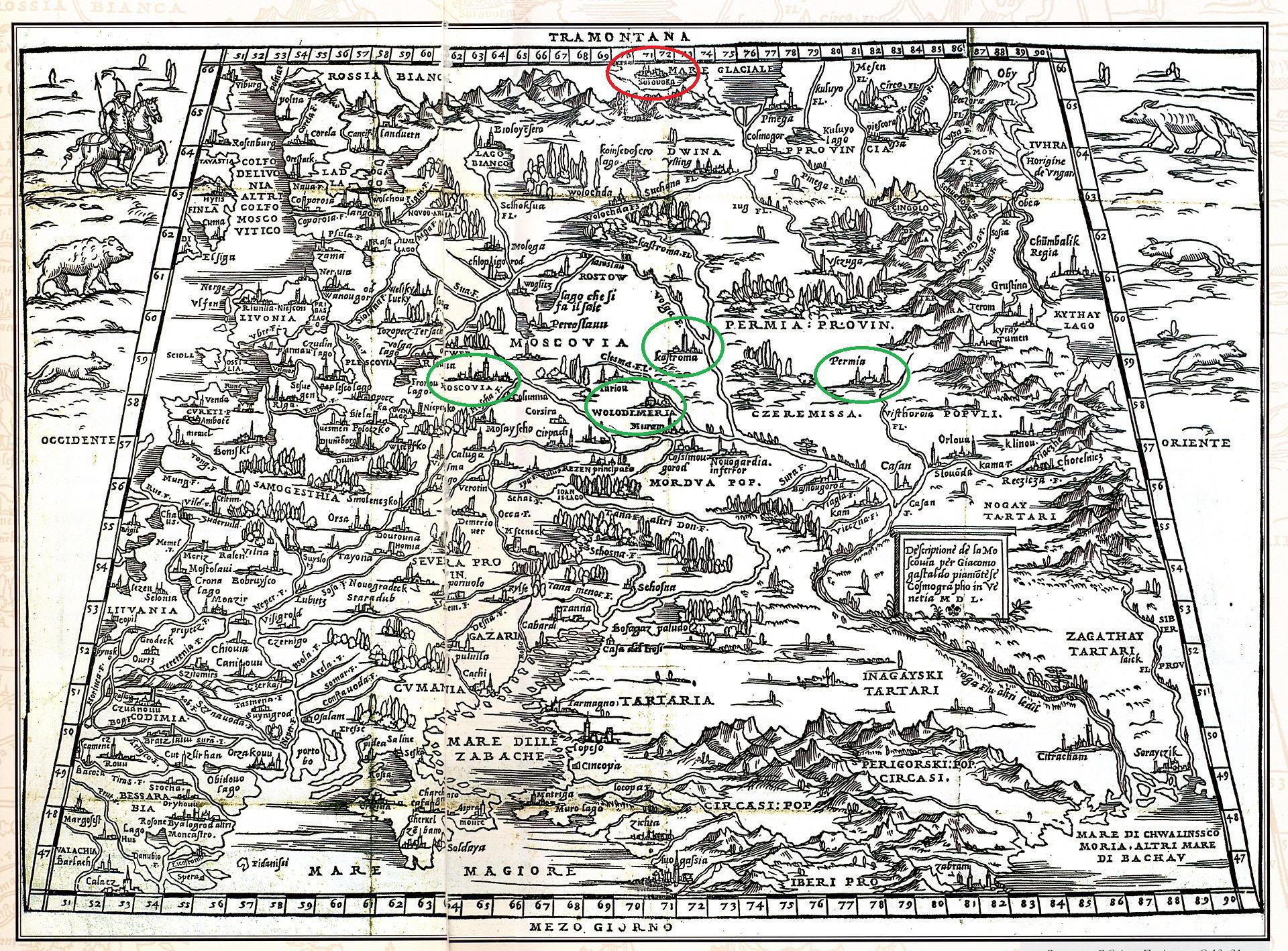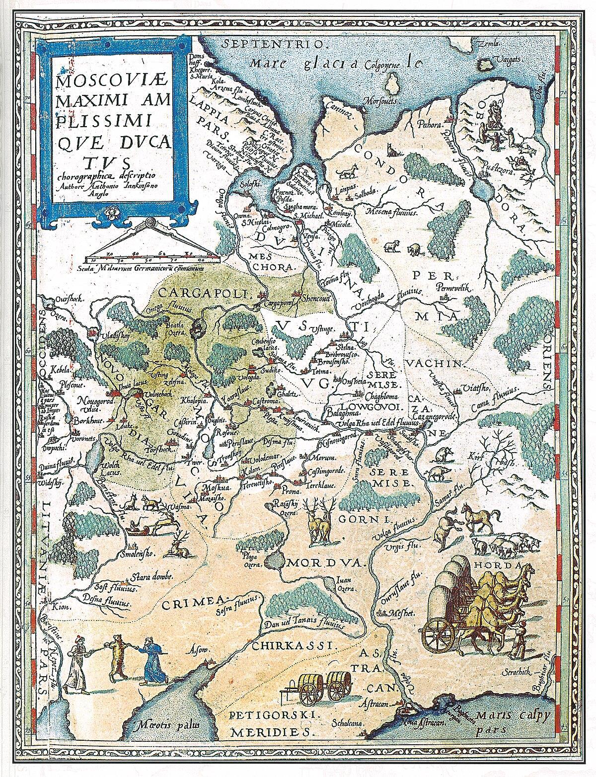 Английская карта Антония Дженкинсона (1562 года основе чертежа 1497 года), древнейшая карта Московии