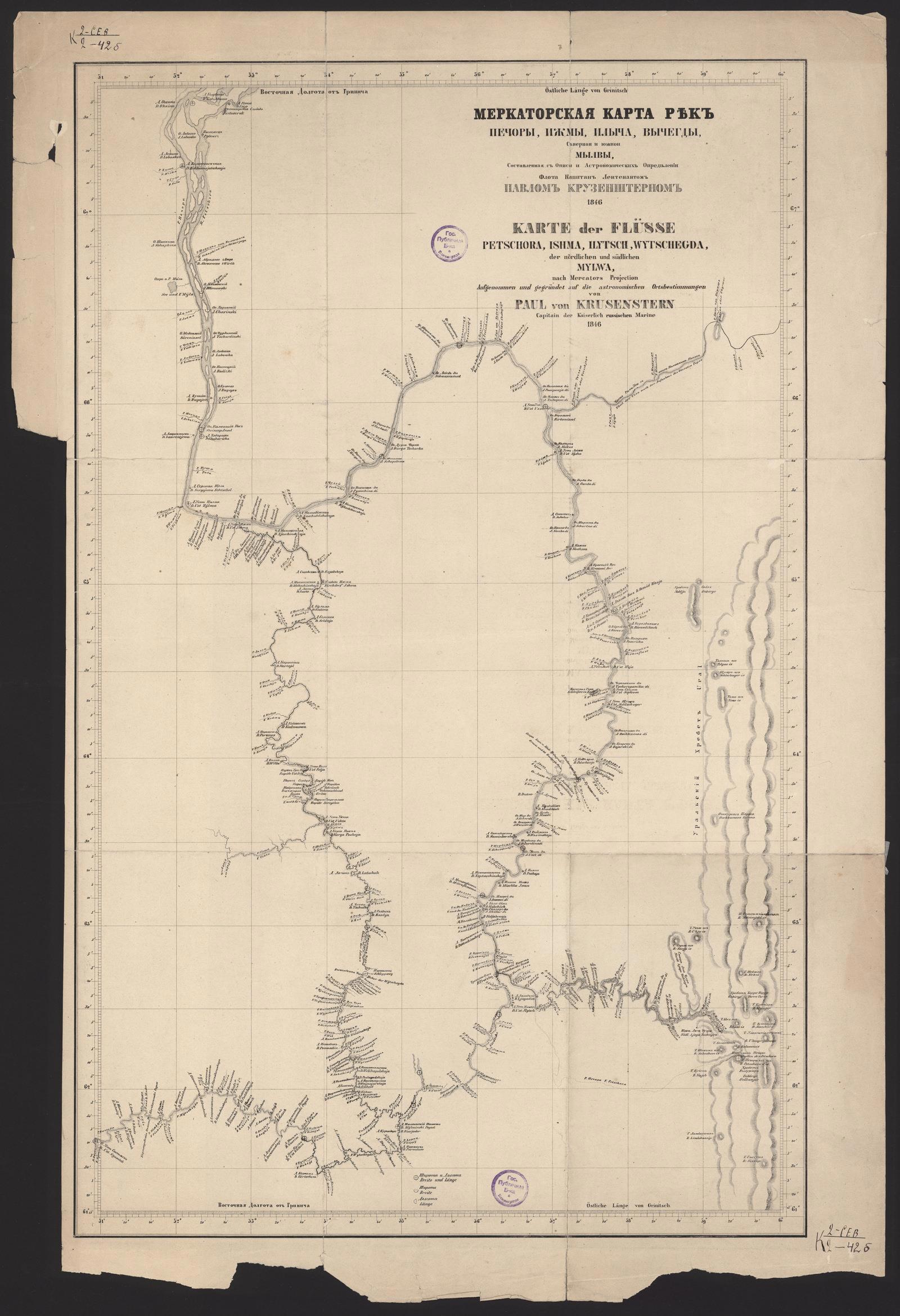 Меркаторская карта рек П. Крузенштерна (1846), Печора и рядом