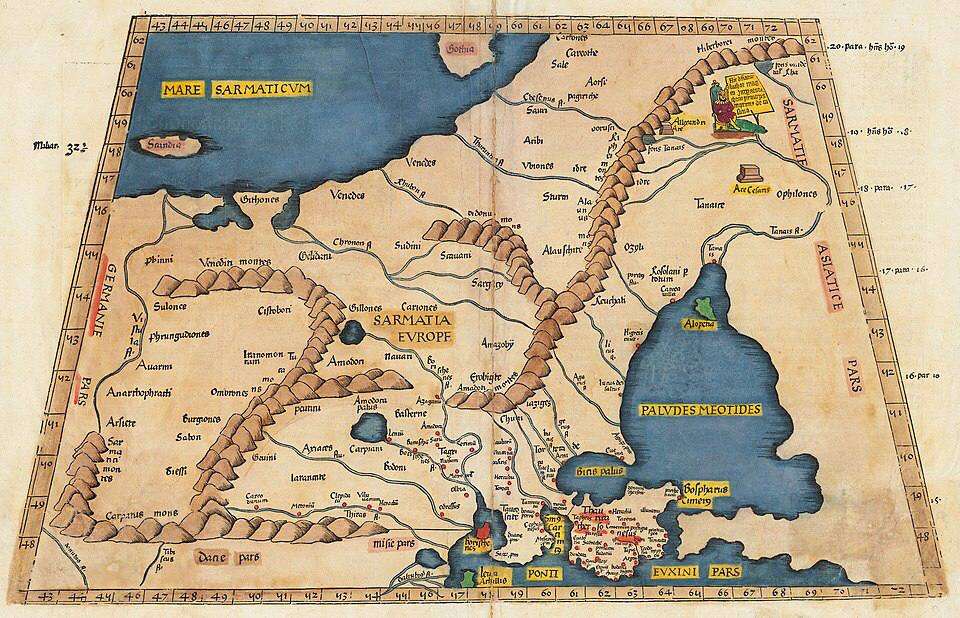 Карта Восточной Сарматии (1536) - польская версия происхождения славян