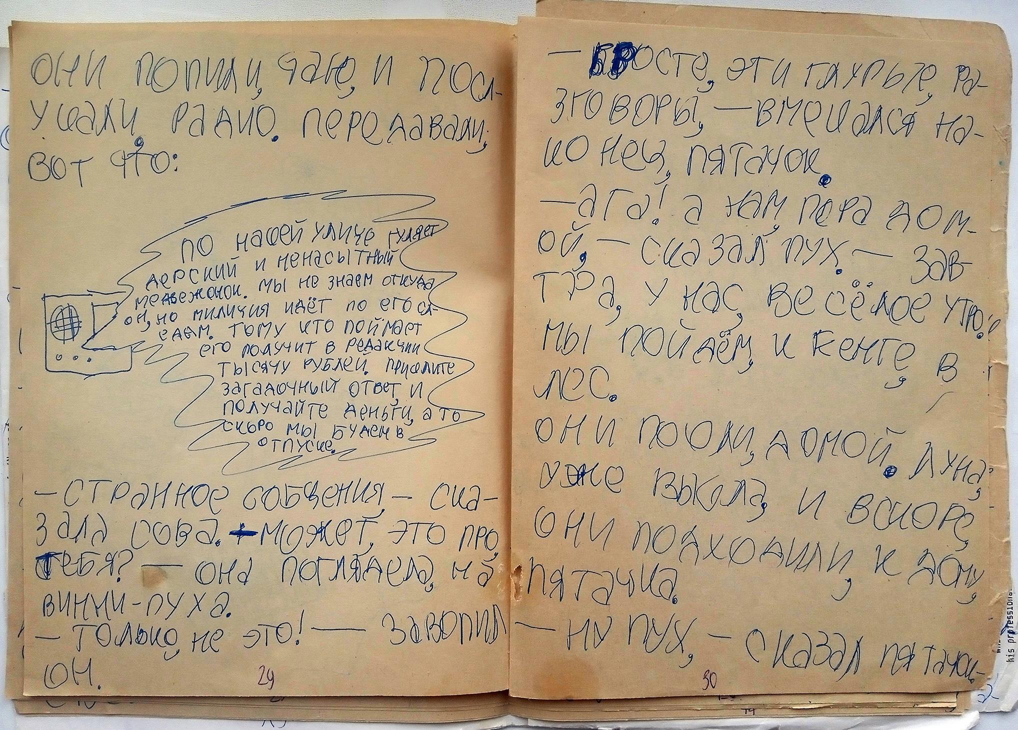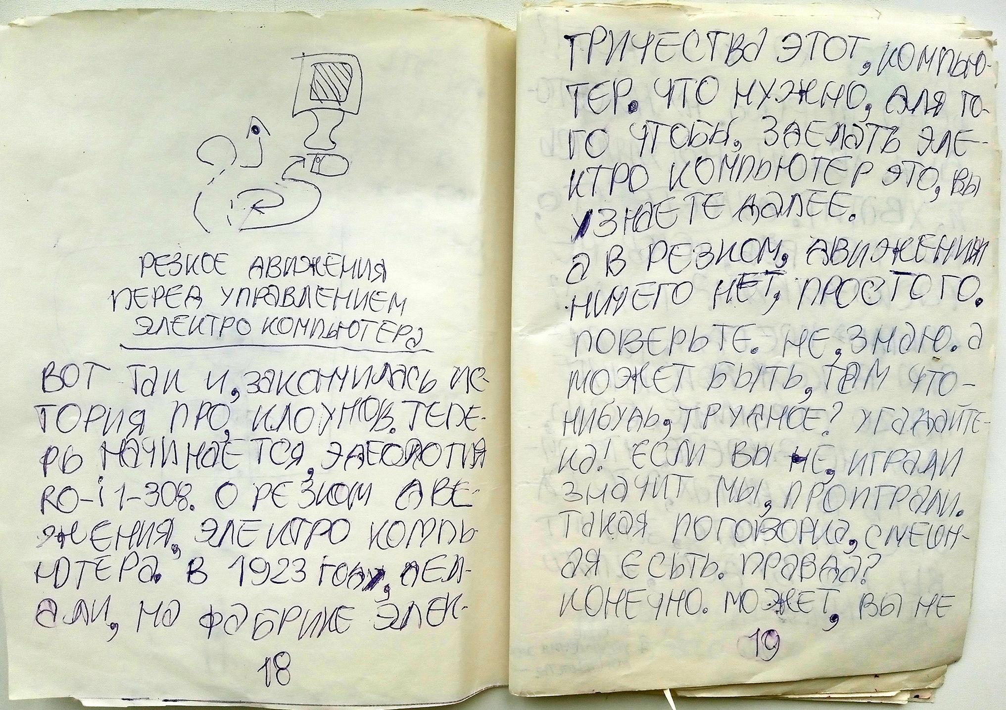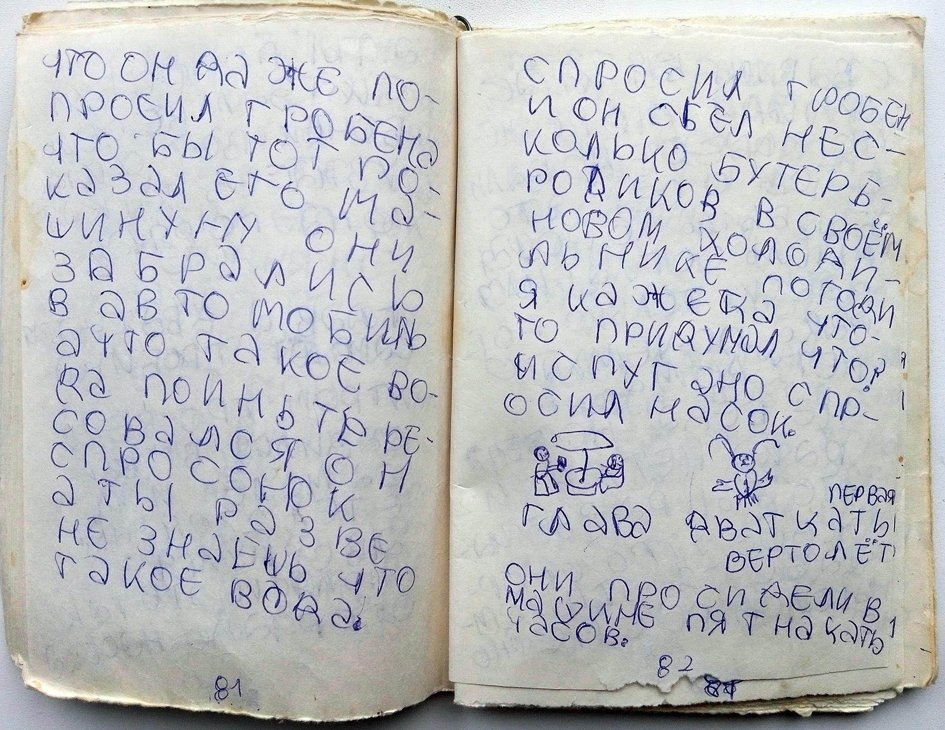 И читать, и писать я учился, кажется, одновременно. Дешевая бумага, которой дитю предоставили груду, быстро покрывалась гуляющими строчками безобразных печатных букв. Едва освоив грамоту, я принялся записывать все, что видел и слышал: отрывки прочитанного и разговоров взрослых, сообщения дикторов, фразы актеров, формулы телерекламы — громкие во всех значениях слова. Разумеется, в этом пока не было никакого порядка, а только «в линенграде трубы переламувались».